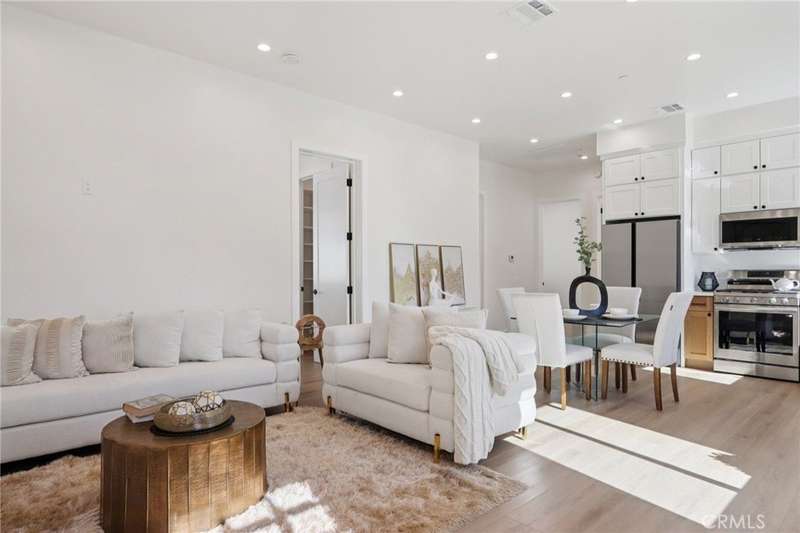 Step inside this spectacular newly built residence and ADU perfect for generational living and offering ample space for both families. The main house spans 2,450 square feet on two levels and consists of 5-bedrooms and 5-bathrooms. The home boasts high ceilings, oak wood floors, custom kitchen with oak cabinetry, premium appliances, quartz countertops, a wonderfully sized island, a walk-in pantry, and dining quarters. On the first floor you will also find an ensuite bedroom, a tastefully designed powder room for your guests and the living room beaming with natural sunlight. On the second floor, there are 4 additional bedrooms, three being ensuite bedrooms and a large-sized laundry room with cabinets plus extra storage closets in the hallway to store more items. The main house also has an attached garage with epoxy floors and cabinets. As you step outside to the backyard, you’ll find a lushly landscaped lawn, covered patio and room to add an outdoor BBQ area. At the end of the lot, is a 1,200 square foot ADU which includes 3 bedrooms and 2 bathrooms. Offering ample privacy and space, the home is ideal for a multigenerational living or for additional income. Featuring meticulous craftsmanship the home is a product of 2+ years of design and construction built on a 8,900 square foot lot. Property is located in Central Van Nuys with a close proximity to shops and restaurants.