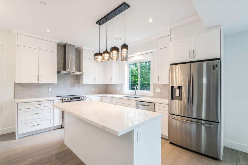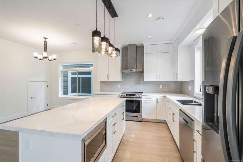 This NEW 2120 sq. ft. 4 bedroom townhome with it's wonderful rear yard offers the best of coastal living in a neighbourhood with some of the nicest homes in Nanaimo. A collection of 18 single, free - standing Townhomes, 5160 Hammond Bay ensures that virtually every detail of these residences has been carefully considered, from the beautiful materials to the thoughtful craftsmanship. Here is a rare opportunity to own a meticulously designed residence featuring the finest materials and today's modern conveniences. Engineered hardwood flooring, quartz countertops, second floor balconies, Kohler fixtures in the Kitchen and master bedroom and more! Most of the additional bedrooms come with their own ensuite, enclosed tub with sliding shower doors. This is life at 5160 Hammond Bay. Price is plus gst