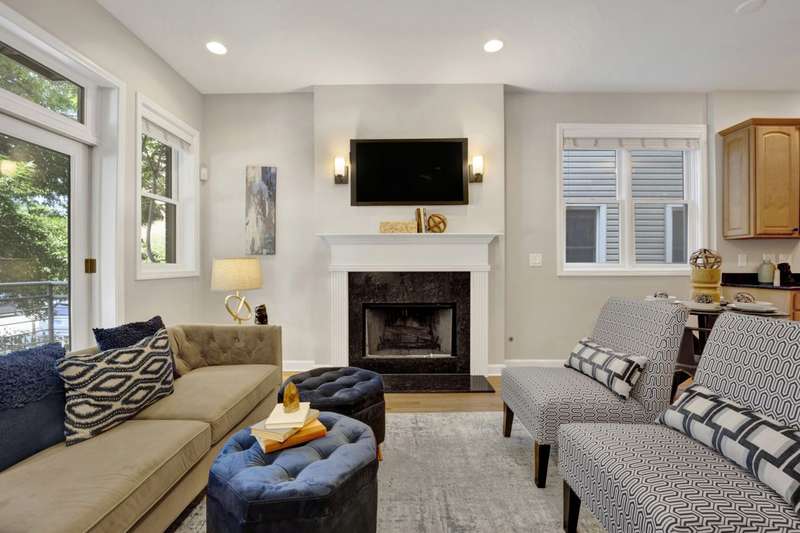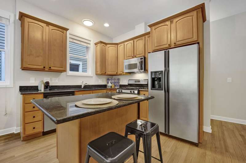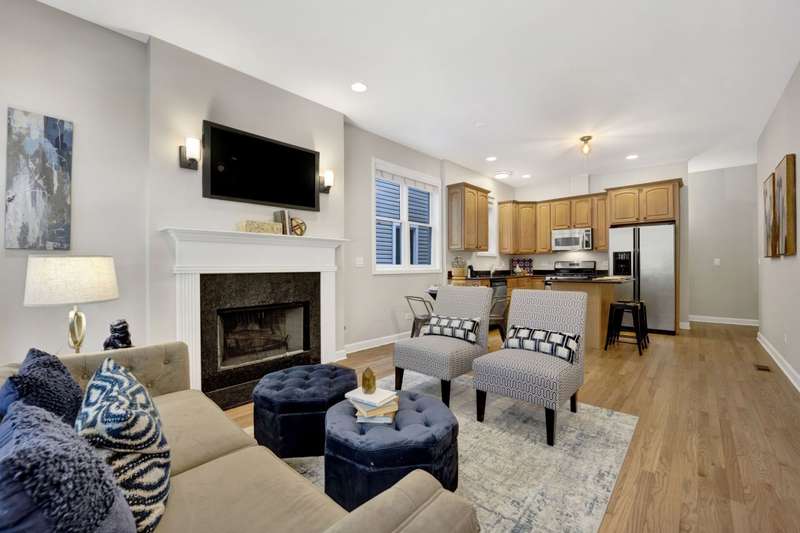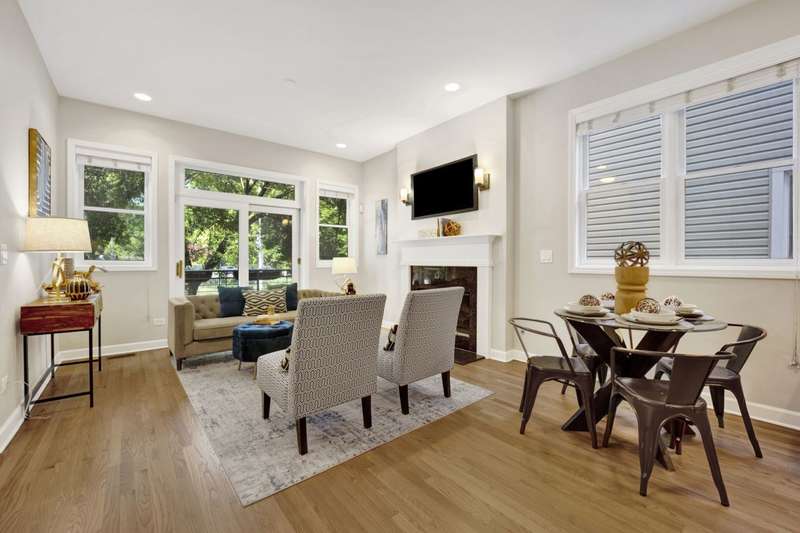 Welcome to this expansive 3-bedroom, 3-bath duplex that lives like a single-family home and is just two blocks from the gateway to Andersonville. With two private outdoor spaces-including a front balcony and rear deck-this home is perfect for both relaxing and entertaining. The open-concept main level features soaring ceilings, recessed lighting, freshly painted walls, and newly refinished hardwood floors. The kitchen is equipped with 42-inch cabinets, granite countertops, an island, and stainless steel appliances. Adjacent to the kitchen, the living and dining area offers a cozy gas/wood-burning fireplace and sliding glass doors leading to the balcony. The oversized primary suite boasts a walk-in closet, private deck access, and an en-suite bath with a whirlpool tub. The lower level includes a large family room with a second fireplace, an additional bedroom and full bath-ideal for guests or a home office-a full laundry room, and abundant storage. Additional features include tandem parking for two cars and a separate storage unit. Just steps from the Red Line, Clark Street bus stop, and the new Metra station-this is urban living at its best.