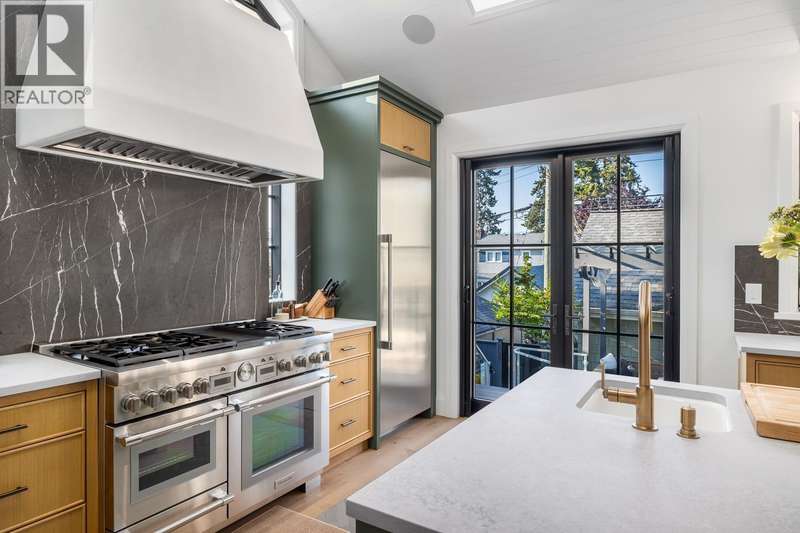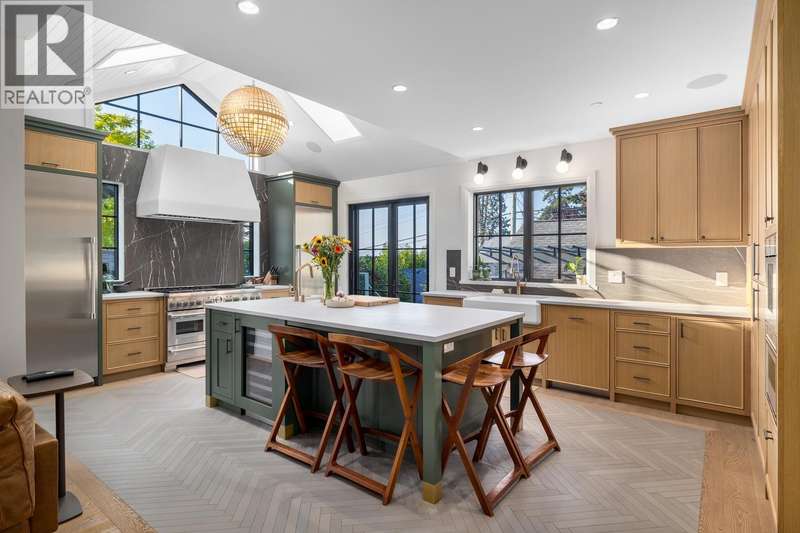 Nestled in Vancouver's most coveted neighborhood, this meticulously renovated 6 Bed heritage home offers the perfect blend of historic charm & modern luxury. You'll be greeted by a grand foyer adorned w/a fireplace, custom railings & stunning oak paneling. The heart of the home, a gourmet kitchen, boasts vaulted ceilings, skylights, natural oak cabinetry, and showstopping appliances. Upstairs, discover three spacious bedrooms and a convenient laundry room. The primary suite boasts the whole top level and features a luxurious ensuite with panoramic views of the city, mountains, & water. Lower level offers a versatile rec room & an extra bedroom. The basement + stratified coach home offer great options for a mortgage helper(s) or family! (id:58403)