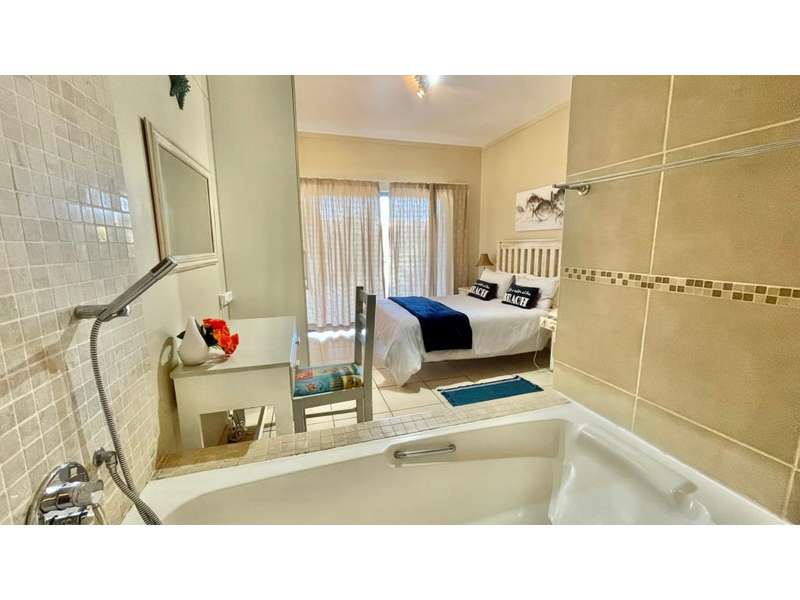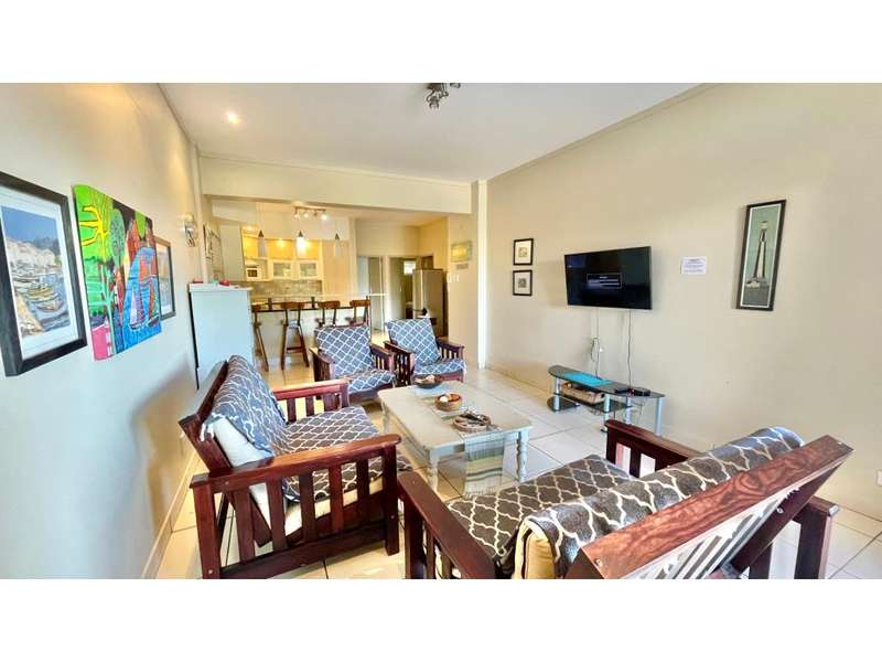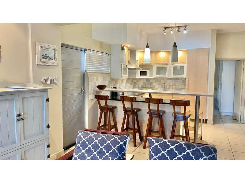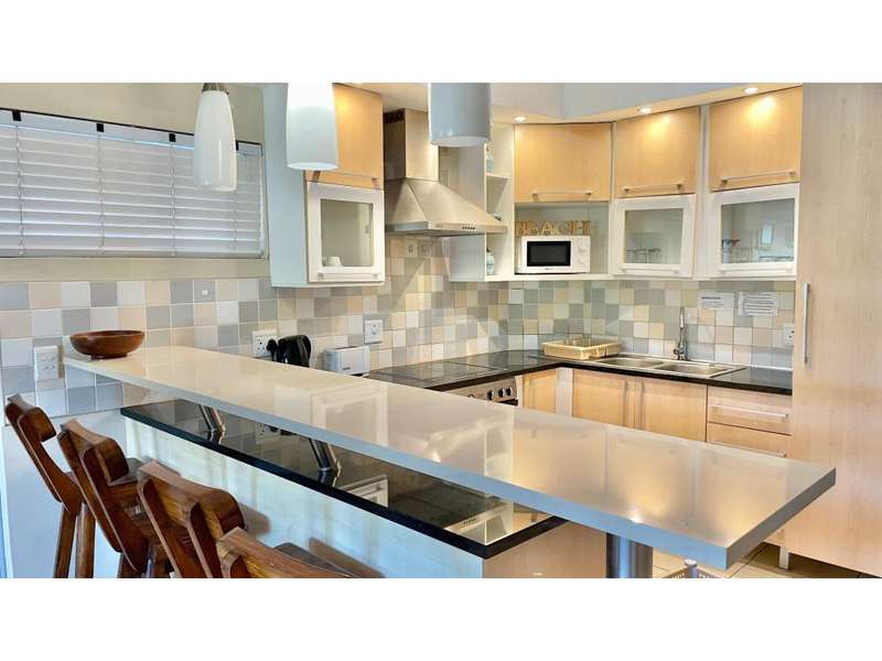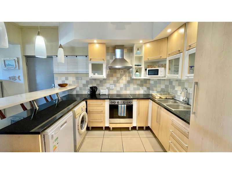 WHALE ROCK Beautifully furnished, ground floor apartment with great sea views and a large covered patio. Spacious living area and a stunning kitchen. The master bedroom has an open plan bathroom and has a door that leads to the covered patio. Enjoy the communal swimming pool area with vast views of the ocean and a stroll onto the beach. This is a great investment property, perfect for holiday letting or as a "lock up and go" holiday apartment. Covered parking and good security.