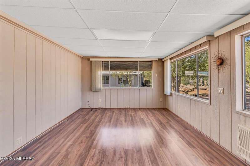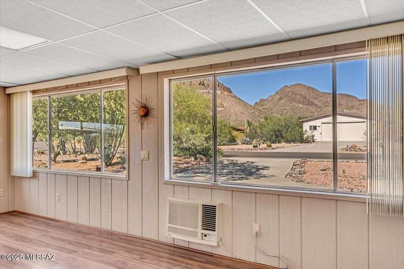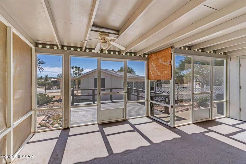This charming home sits on a desirable corner lot and offers breathtaking mountain views. Enjoy the Arizona sunshine in the spacious Arizona room, perfect for relaxing or entertaining. The split floorplan provides privacy and comfort, while the open living and dining area creates a welcoming and airy atmosphere. Benefit from added security and energy efficiency with rolling shutters on all windows. The HOA covers a fantastic array of amenities, including a refreshing pool and spa, tennis courts, pickleball courts, and access to nearby hiking trails.
