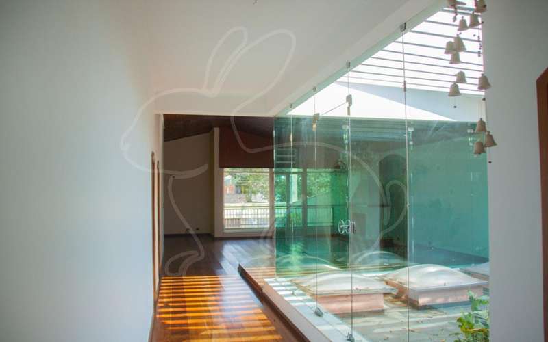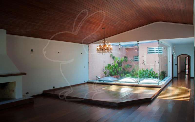 Casa térrea assobradada. Living para vários ambientes com lareira e jardim de inverno. 4 suítes e lavabo. Área externa com piscina e espaço gourmet com churrasqueira e formno de pizza. Dependências de empregados e lavanderia. Garagem enorme para 8 carros!