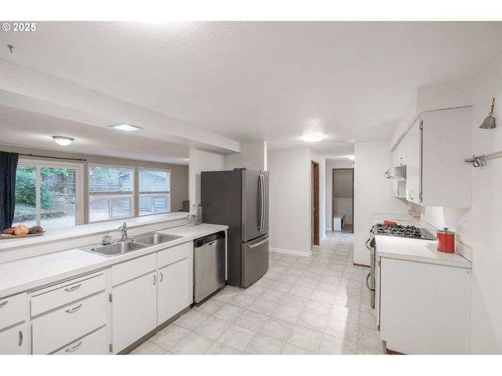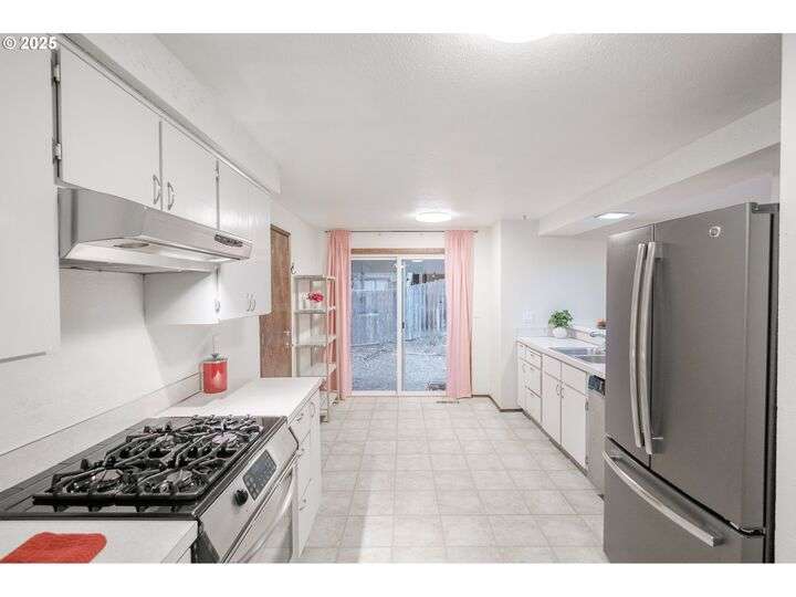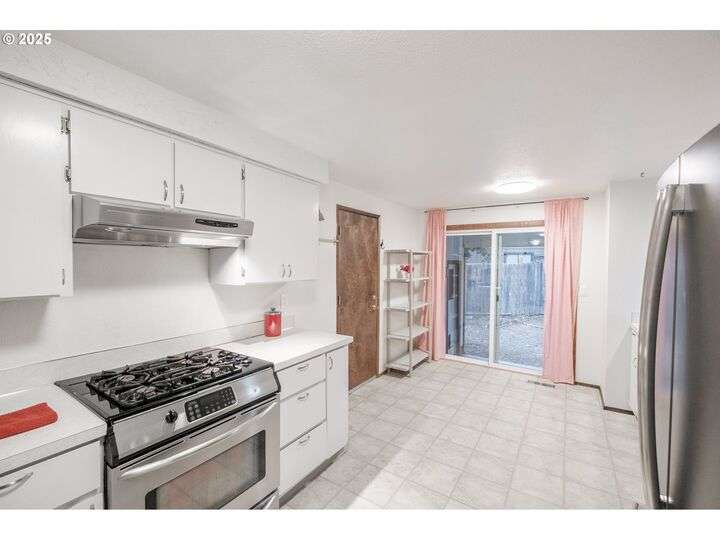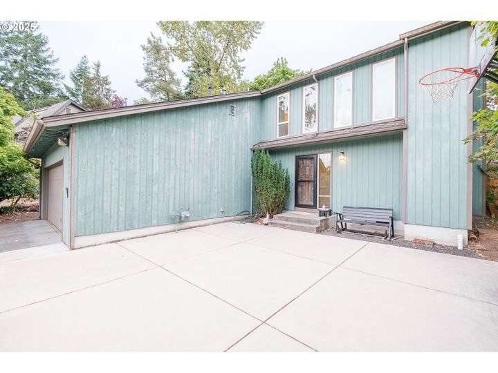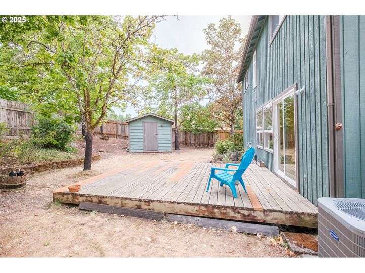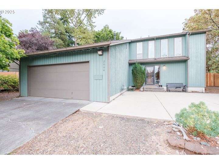 Well kept home tucked away on a private lot with room for gardening, basket ball court, and more. Spacious kitchen with stainless steel appliances and large center island, open dining and living, sliding door to fully fenced backyard. Large primary bedroom, two other bedrooms, updated bathrooms. Private backyard fully fenced with raised beds, shed, and room for gardening. Gas forced air heating with AC, 2-car garage with ample storage. Updates: fencing & deck 2025, bathrooms 2023, patio 2020, AC 2018.