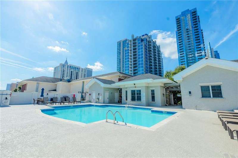 Live in the heart of Midtown Atlanta at the sophisticated Dakota condominiums. This spacious 1/1 blends classic charm with updated luxury. The large floorplan offers the feel of a home rather than a condo with an open concept layout centered around a cozy gas-log fireplace. The updated kitchen features high-end finishes including Silestone counters, Craftmade custom cabinets with slow close drawers and a stainless steel appliance package. Natural light floods the home, highlighting the beautiful chestnut floors that extend throughout the living and dining areas. Retreat to the oversized primary bedroom suite, which includes a spa like frameless walk-in shower, dual vanity, sitting area and large walk-in closet with Elfa custom storage system. The owners suite is a true sanctuary and features a tray ceiling, custom lighting and access to your private balcony. The Dakota offers residents a large rooftop pool with spectacular skyline views, a rooftop catering kitchen and fitness room, landscaped courtyards and controlled access parking deck. The property also comes with 2 assigned parking spaces which is extremely rare for a 1 bedroom home. Located just 3 blocks from Piedmont Park and the Atlanta Beltline other nearby attractions include the Fox Theatre, and Midtown's best restaurants and retail shopping. The property offers convenience to the MARTA rail system and easy access to interstates 75, 85 and GA 400. Welcome home!
