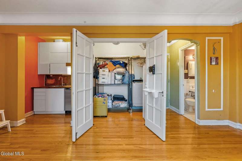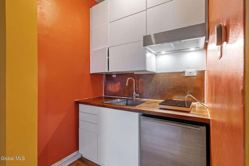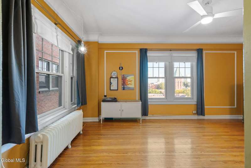 Situated in the heart of Albany with beautiful views of Washington Park, this studio condo combines character and convenience. From the condo windows, enjoy a stunning view of Albany, bringing the city's charm right to your home. Inside, you'll find a spacious layout with a large closet offering plenty of storage potential. The kitchen was updated in 2019 with sleek IKEA cabinets, modern countertops, and a striking copper backsplash. Additional highlights include newer windows and newly refurbished elevators for added ease. Set in a charming building where the atmosphere of the lobby takes you back in time, residents also enjoy modern conveniences such as bicycle storage and an on-site laundry room. Perfectly located just minutes from downtown Albany, you'll be close to hospitals, schools, restaurants, shopping, and more! Don't miss the opportunity to own this well-maintained condo in one of Albany's most desirable locations.