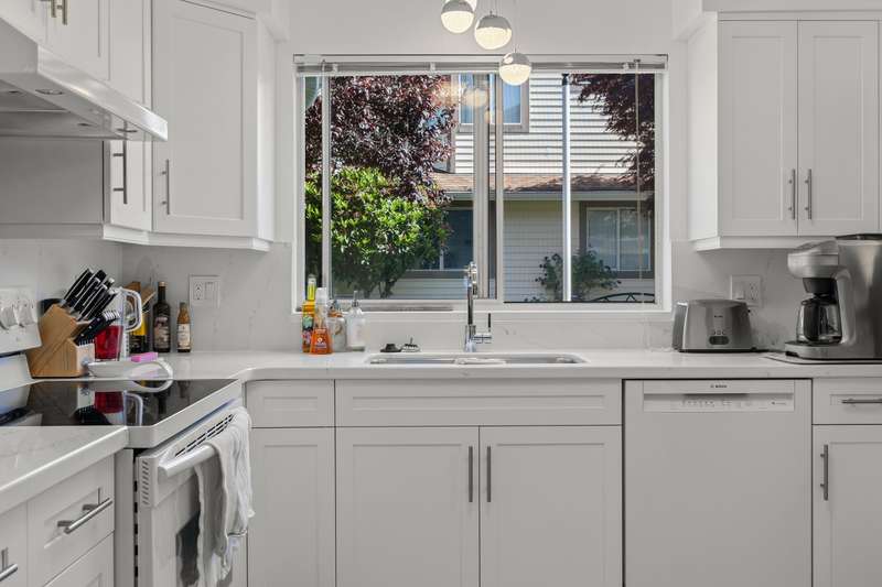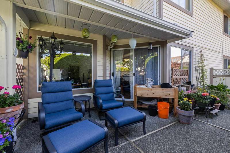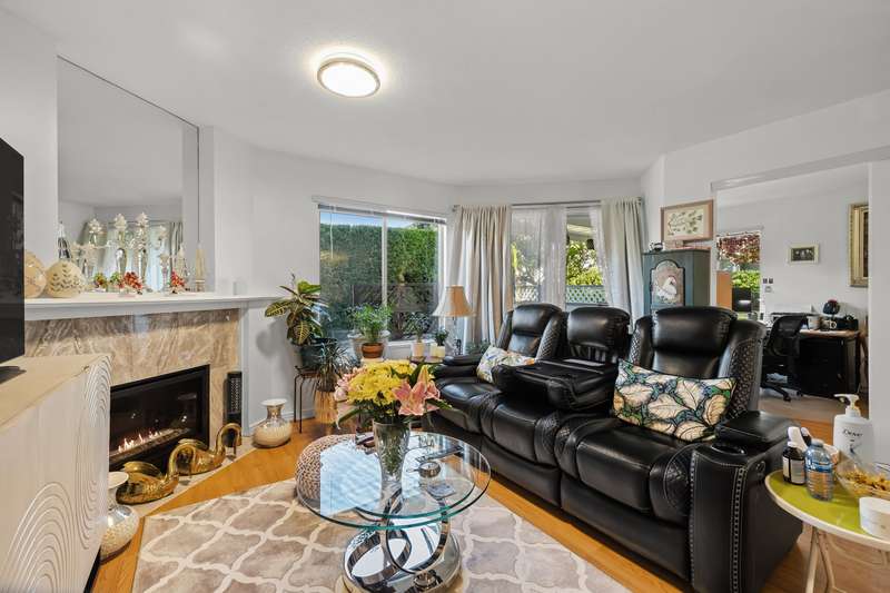 Welcome to Kensington Gate, a secure, and very well maintained community! This ground level townhome features 2 bedrooms, 1 bathroom with 2 enormous patios and tons of natural light. Enjoy a recently transformed kitchen, fully renovated bathroom, updated appliances, a 2021 hot water tank, an upgraded natural gas fireplace. Set in a quiet, garden-like setting, this home offers comfort and functionality. This community offers great amenities like an outdoor pool, hot tub, and a clubhouse. Close to transit, shopping, parks, and schools and much more! You don't want to miss this one so book your tour today! Open house Sunday Aug 10 (12:00 - 2:00 pm)