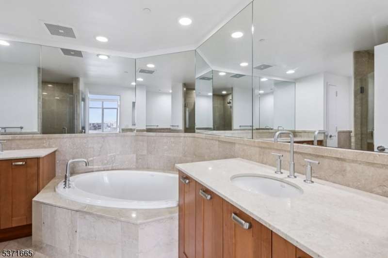 Experience the luxurious lifestyle that only Watermark on the Hudson can provide, offering five-star services and over 40,000 sq ft of amenities. The pampering begins before you even enter the building with valet service and a doorman ready to greet you, followed by an elegant lobby with 24/7 concierge service.This stunning 6th-floor, move-in-ready 1,365 sq ft residence features a floor-to-ceiling panoramic bay window framing breathtaking views of the Manhattan skyline and Hudson River. The bright, open floor plan includes 2 bedrooms, 2 bathrooms, and 2 deeded parking spaces. Freshly painted with refinished wood floors, the home boasts 9-foot ceilings, a split-bedroom layout and low electric bills!Enjoy a spacious living and dining area, a gourmet kitchen with stainless steel appliances, granite countertops, and a breakfast bar. Both bedrooms feature marble en-suite baths, custom walk-in closets, and a washer/dryer just 3 months old. The primary bath offers dual sinks, a large shower, and a separate soaking tub. The Watermark's world-class amenities include a state-of-the-art health club with sauna, steam, and massage rooms, indoor and outdoor pools, a media room, guest suites, golf simulator, social and executive lounges, a complimentary shuttle to the NYC ferry and a scenic riverwalk. Minutes from NYC with a bus stop at your door and the tram just steps away, restaurants and all needed services within walking distance don't miss this opportunity to live the high life!
