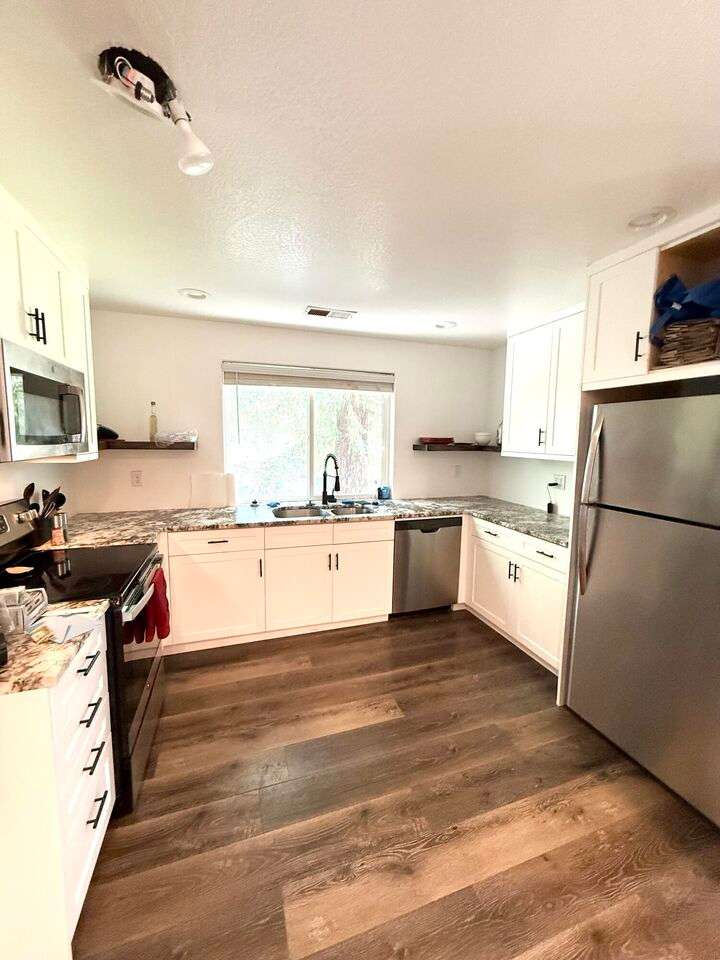 A rare opportunity! Large lot in town with a 4-bedroom house, huge shop, and two spaces with future income potential! The main house is over 2,000 sqft with 4 bedrooms, 3 bathrooms, and additional 500 sqft of garage space that has been converted for entertainment. The shop has double roll up doors with a passthrough, massive amount of storage, full bathroom, and full RV hookups for additional parking. There's additional space above the shop that has a full kitchen, washer and dryer, and 1.5 bathrooms. Behind the main house is another structure featuring a kitchen, bathroom, and washer/dryer. Both of these living spaces were used as rentals but not permitted.