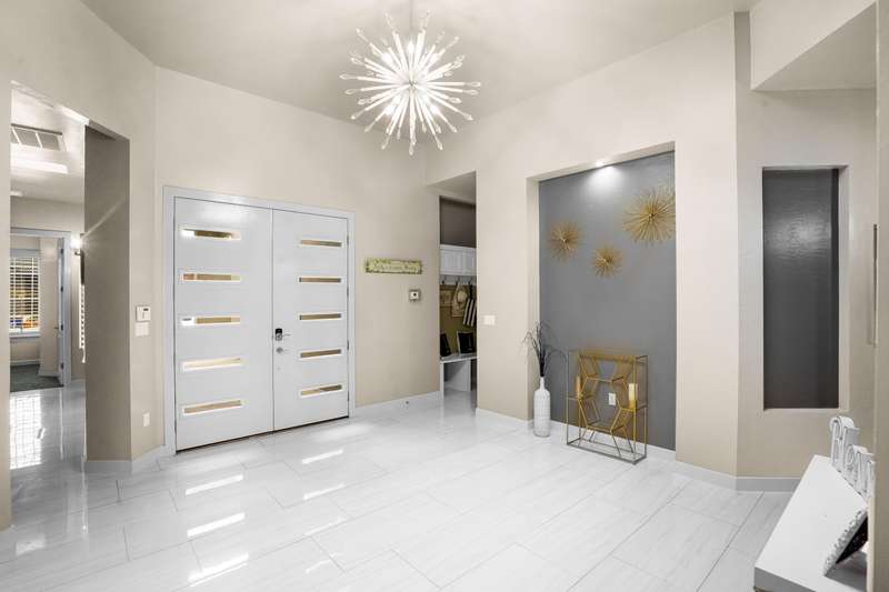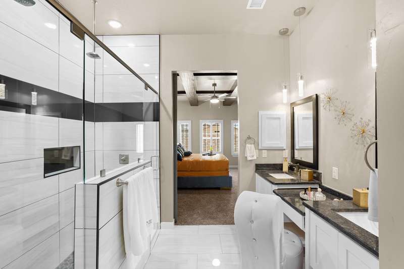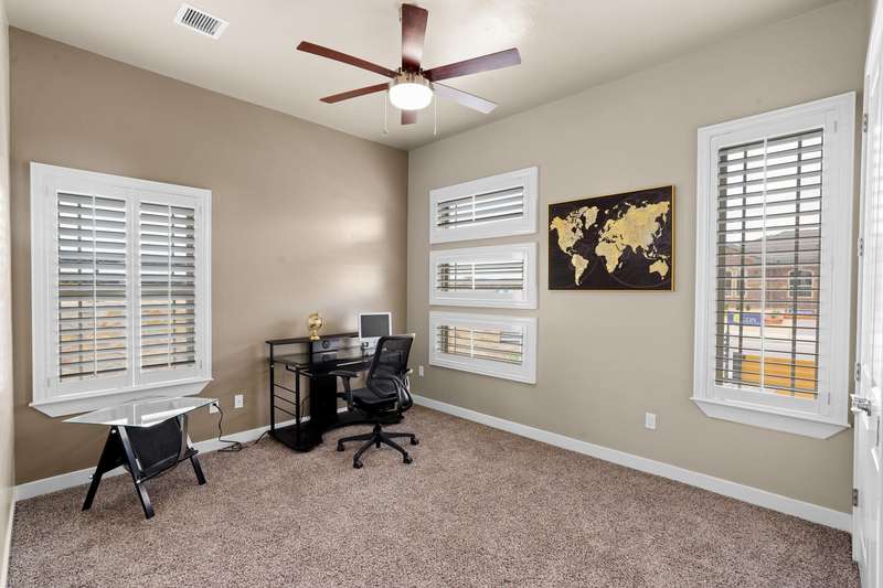 Introducing the ever-so-popular Serenity Floor Plan. This brilliant floor plan that includes the following features. Beautiful step-up kitchen with upgraded stainless steel appliances. Large family room accented with tall ceilings. A theatre room that is always a hit with friends and family. The master bedroom and master bath have all the amenities you've been looking for such as extra large dual shower, granite countertops, large walk in closet.. to name a few. 3 more bedrooms that offer accent walls and tall ceilings. This model comes standard with a 3 car garage that is completely painted on the inside to include the floor and has overhead storage. All major windows offer custom shutters.