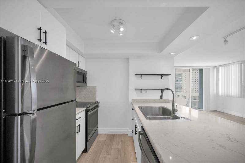 Beautiful and bright corner 2/2 in the heart of Downtown Miami! This split-plan residence features an open kitchen with white cabinetry, newer stainless steel appliances, and quartz counters, plus bathrooms with elegant marble countertops. Enjoy resort-style amenities: rooftop tennis, basketball, volleyball, pool, gym, library, BBQ area, and more. Steps to Brightline, Metromover, and MetroRail, plus Publix, Target, Starbucks, Bayside, and Kaseya Center. Minutes to Brickell, Midtown, Wynwood, and Miami Beach. Assigned covered parking in a secure gated community.