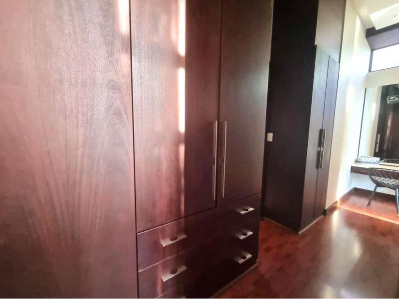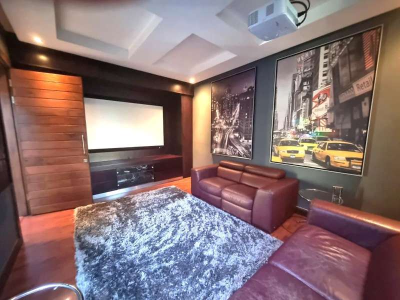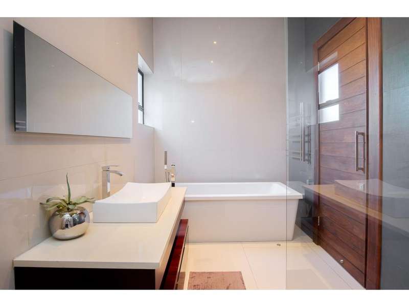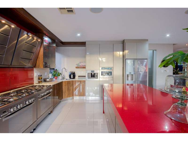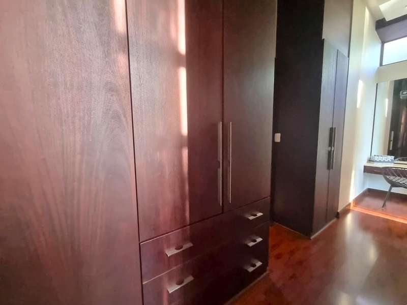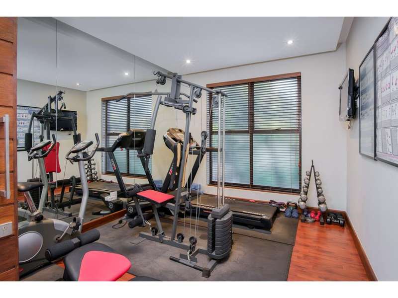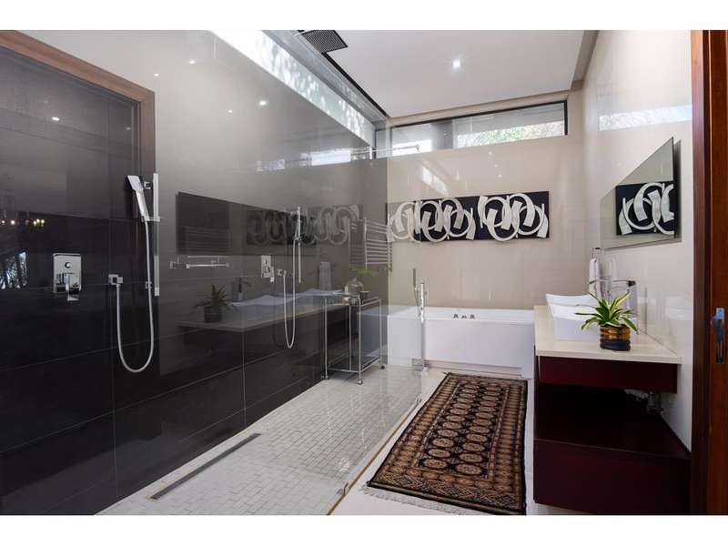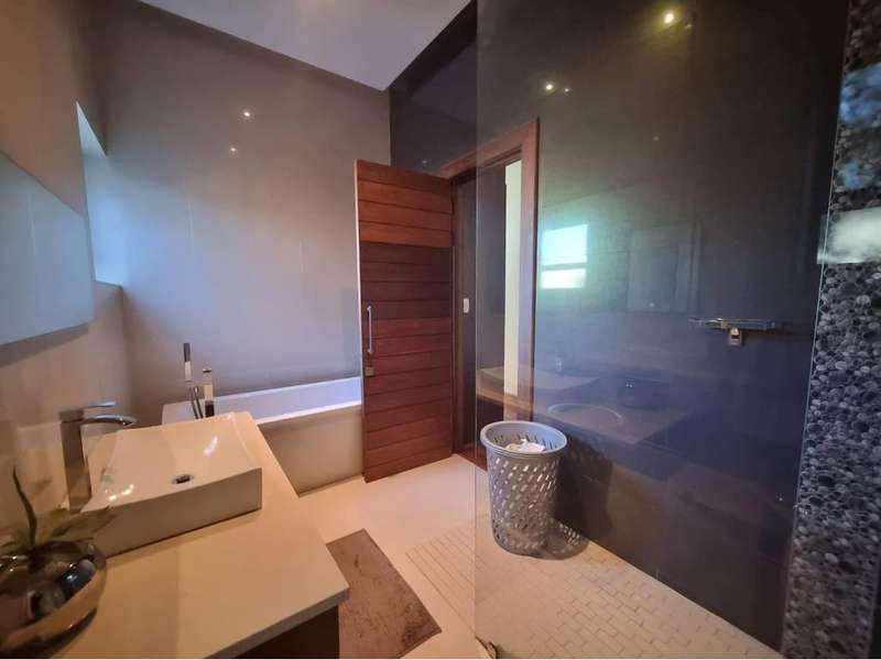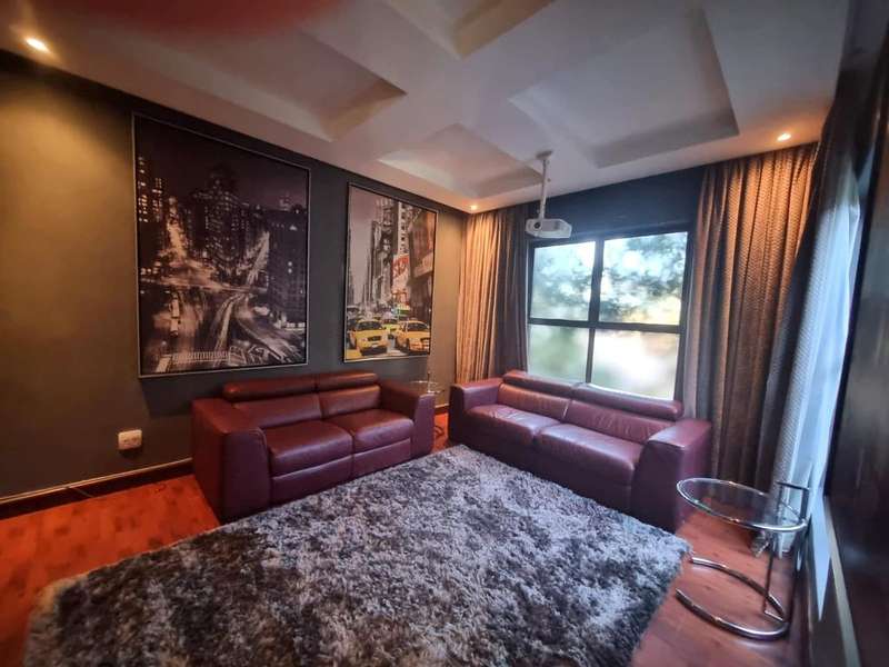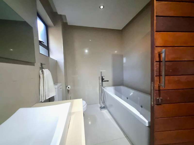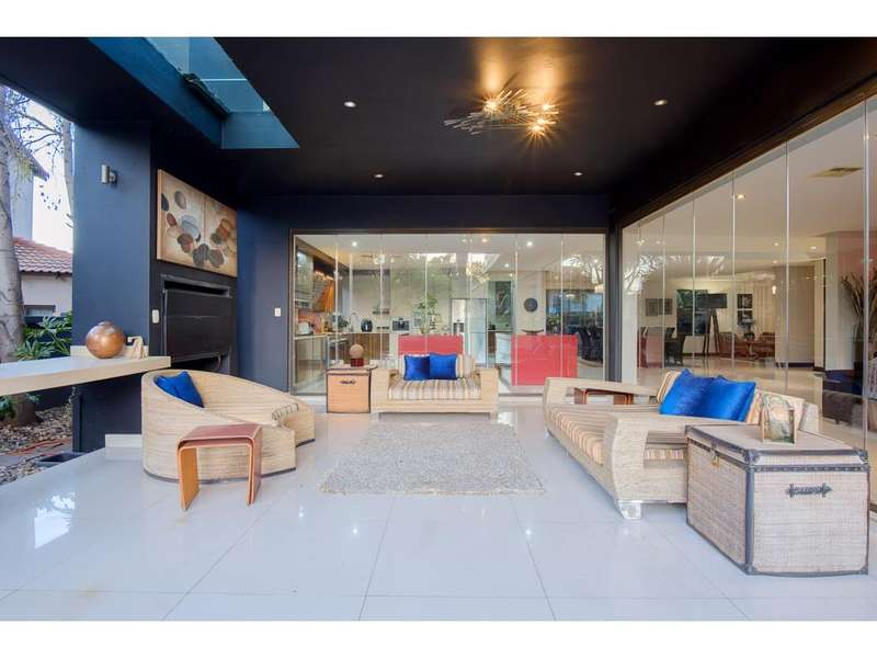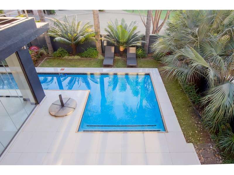 Located in a quiet cul-de-sac in Midstream Estate Proper, this modern, immaculate, luxury family home offers the exeptional: The double volume entrance features two beautul chandeliers, and a sweeping staircase to the living quarters upstairs. Downstairs you will find the ultimate in entertainment areas: * this open plan area (279m2) consists of * a generous formal lounge area, * a 14 seater dining area with fireplace. * a stunning hi-end kitchen, * enormous TV lounge area and * 12 seater bar area with 2 built-in kegs. This entire frontage of living area is closed in with glass fold-away glass doors. Opening these glass sliders extends the entire living area onto the exspansive patio, the swimmingpool and garden. * Next to the bar is a temprature controlled walk-in wine celler. * The gourmet kitchen includes: ~ 2 x freestanding Elba stainless steel stoves with Gas burners, electric ovens and warming drawers. One of the stoves include a fish-burner. ~ Two state of the art AEG extractors above the stoves. ~1 x Conventional eyelevel oven with warmer. ~1 x Coffee grinder and coffee machine. ~ Beautiful white granite tops, complimented by light high gloss cabentry. Ample storage. ~ Two extra large waterfall red quartz islands, adds work space, storage and seating for 6. ~ A sparate scullary and laundry with space for all your electronic equiptment. ~ Walk-in pantry, ~ Veggie prep basin close to stoves. * There is a study on the ground floor, * as well as a guest W/C * Direct access from the house to the 4 car garage. * a Seperate laundry. * servants quarters or flatlet with private entrance. * A garage accommodating 4 vehicles side-by-side. Upstairs is: * 4/5 x large bedrooms. (Main bed = 78m2) * 4 x bathrooms (3 is ensuite). All the bathrooms are full bathrooms with walk-in showers, towel warmers, underfloor heating and heating/cooling air controll, double vanities and spa- baths in some, and multiple shower heads in the main bathroom shower. ~ Walk-in/walk-through cupboards in all the rooms. ~ wooden flooring in 3 bedrooms and main bedroom has carpeting. ~ Main bedroom features aluminium framed glass sliders, openening onto a private patio. * A dedicated soundproof home theater/cinema room. Even the roof in this area has been soundproofed. Can also serve as an additional bedroom.
