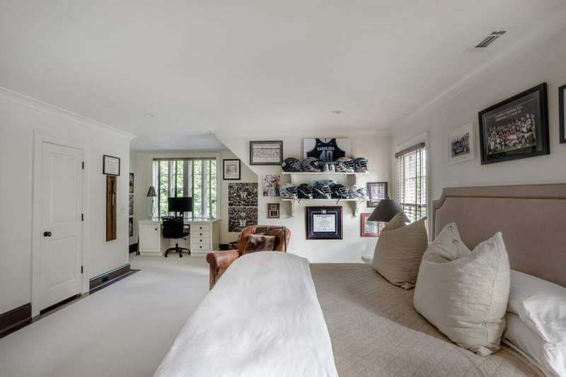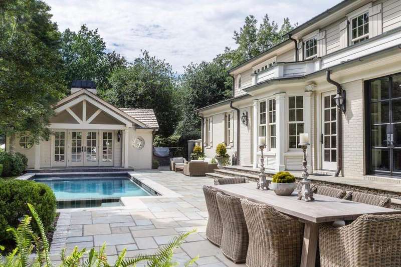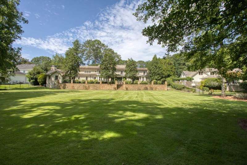 Exquisite Kingswood Estate Nestled in the highly sought-after Kingswood neighborhood, this stunning 5-bedroom, 5-bath residence designed by the acclaimed Spitzmiller & Norris offers timeless elegance and modern comfort. Ideally located close to Atlanta's premier private schools, the home combines classic architecture with thoughtful design and luxurious finishes. Enter the custom designed front entrance with a custom Bevolo lantern and new double iron doors with gold hardware accent. . From the moment you step inside, you are greeted by reclaimed wide plank heart of pine floors, custom millwork, limestone fireplaces and antique light fixtures that add warmth and character to every room. The home is filled with high-end custom finishes throughout, creating a refined yet comfortable living environment. This home was completely renovated in 2005 including taking the original home down to the studs, expanding the footprint and re-imagining modern living while preserving charm with a emphasis on quality and elegant sophistication. The main-level primary suite with a large bay window provides lovely views to the backyard while the upper level features four bedrooms, three baths, and a spacious vaulted family room. Other features included on the main level are custom lockers with brick floors, living room lined with iron doors, Rocky Mountain high end hardware, Marvin windows, dining room with fireplace, library with iron doors opens to stone terrace, home office, large oversized bar and oversized pantry and laundry. Walk out from the family room to a large stone terrace with an inviting pool elevated over an enormous flat backyard. There is also a pool house with a full bath and fireplace make entertaining effortless. This home was designed with an ability to entertain inside and out. The flow from the main house to the beautiful terrace, pool and pool house is seamless. Outdoor moonscape lighting along with lighting around the trees on stone terrace create a magical outdoor atmosphere. This exceptional property is a rare opportunity to own a truly custom home in one of Atlanta's most prestigious neighborhoods.
