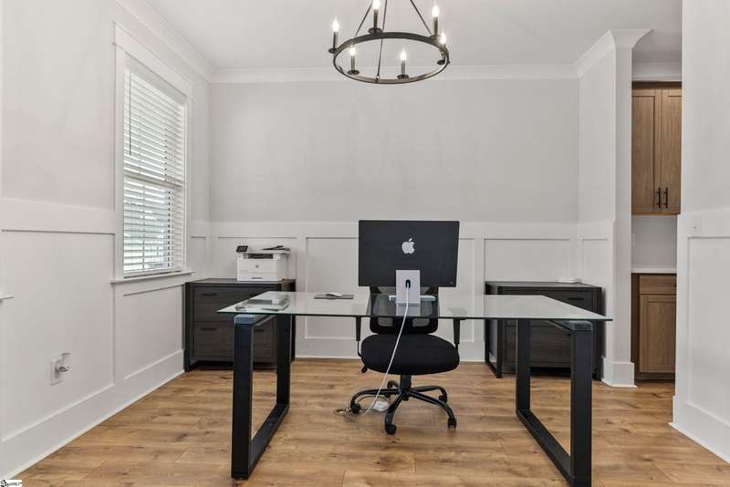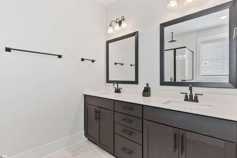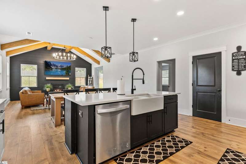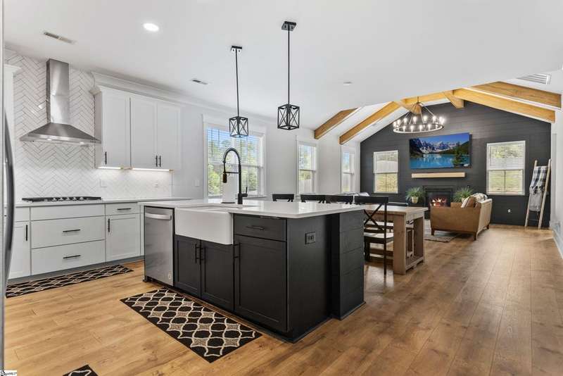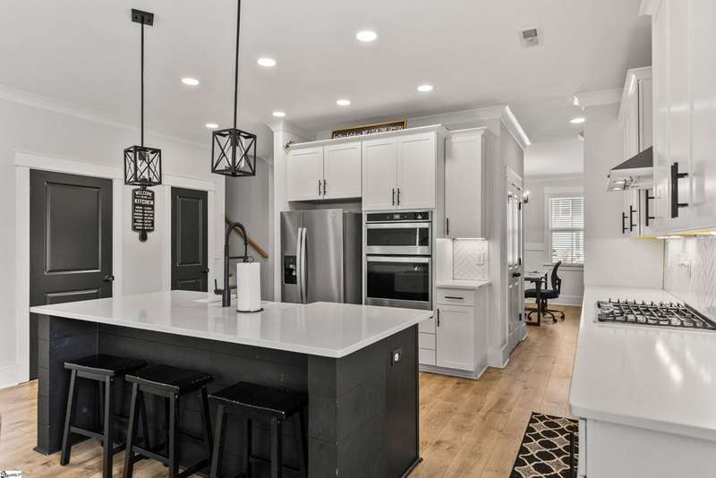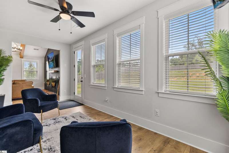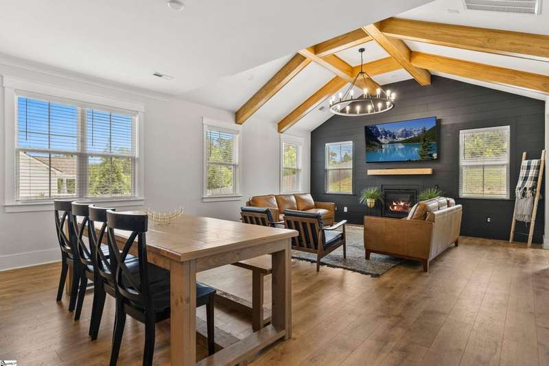 READY for YOUR Move-in! Located in this tranquil newer community of large lots (-.6 acre) along the Reedy River in River Springs in Simpsonville, SC, this spacious Charleston-style -3200sf 5BR/3.5BA home features a lovely floor plan! From the double front porch entry, step into an open design with all the bells and whistles! The main entertaining space here includes a beautiful kitchen opening to the breakfast and vaulted great room! This beautiful kitchen boasts a multitude of cabinetry, quartz countertops, lovely backsplash with under counter lighting, a gas stove top with range hood, fabulous pantry spaces including a large walk-in pantry, PLUS the huge eat-at center island! Attached through the butler's pantry is a spacious dining room (currently used as office space). Notice all the extra molding and detail throughout. Enjoy relaxing times in this great room with so much natural light, a gas log fireplace, and ship lap accent wall! This area leads to yet additional relaxation on the enclosed sunroom enroute to the long patio and large, fenced backyard. Backing to nature, this yard with designed for future pool space with the septic to the right and including a pool box waiting! The primary suite on the main level provides a wonderful retreat with dual closets, dual sinks, tile flooring, garden tub and separate oversized shower with dual showerheads! Tons of storage possibilities exist in this home! Upstairs is super sized as well with a loft area and FOUR more bedrooms(excellent closets) with two hall baths and a walk-in laundry room. Extra details in this beautiful home include ship lap and decorative trim, lvp flooring, ceiling fans, oil rubbed bronze fixtures, window blinds, a gas tankless hot water heater, side load garage, and MORE! All of this in such an easy location to the Simpsonville conveniences including a brand new Food Lion & Publix on the way, I385, and even I-185! Southern living was never so fine! Hurry home to 218 Deerview Trail TODAY! (Also, ask about special financing options!)