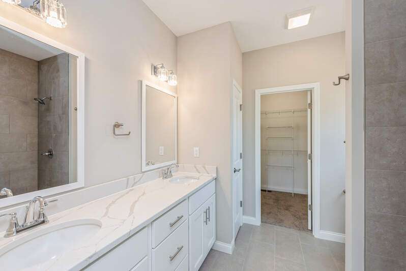Discover comfort and contemporary elegance in this expansive one-and-a-half story home offering four bedrooms and two-and-a-half baths across nearly 2,000 square feet of finished living space. Step inside to find luxury vinyl plank flooring throughout the main areas, with plush carpeting adding warmth to each bedroom. The kitchen is designed to impress, featuring stainless steel appliances, upgraded cabinetry, sleek granite countertops, and ample space for culinary creativity. The main floor showcases a well-appointed primary bedroom retreat complete with a spa-inspired ensuite bath--highlighted by a soaking tub, custom-tiled shower, dual quartz vanities, and a generous walk-in closet. Convenience reigns with a main floor laundry room and a half bath thoughtfully placed for guests. Upstairs, three spacious bedrooms and a full bath offer versatility for family or guests. Downstairs, the full-size basement with daylight windows and a bathroom rough-in is ready for your customization. A spacious rear wood deck and a two-car garage--with an extra four-foot bump-out--round out this thoughtfully crafted home perfect for everyday living and entertaining alike.