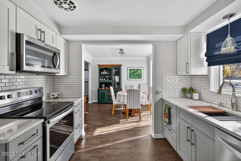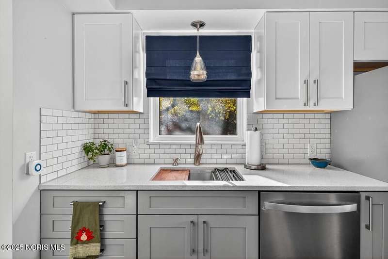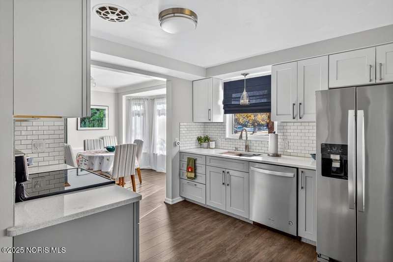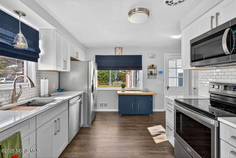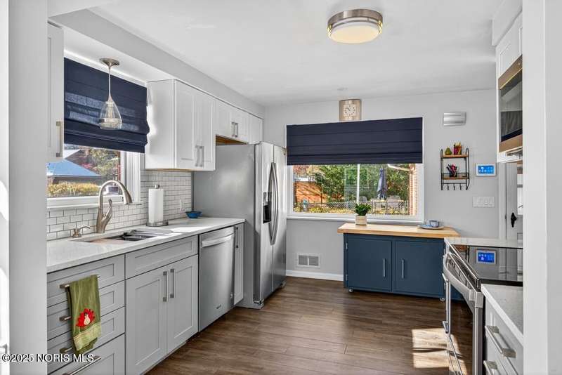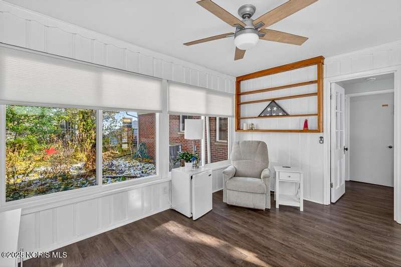 So many updates in this desirable one story home. Totally remodeled kitchen with s/s appliances. New HVAC, and updated electrical. Large windows throughout, Walk in showers-both baths. 3rd bedroom has stackable w/d in closet. Basement is partially finished and has a huge new full bath. Corner lot with a private fenced in side yard. Sqft does not include sunroom/breezeway that was a cozy tv room they enjoyed. Storage, storage everywhere!