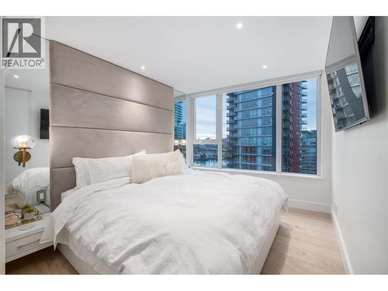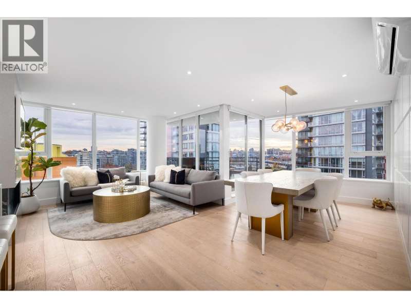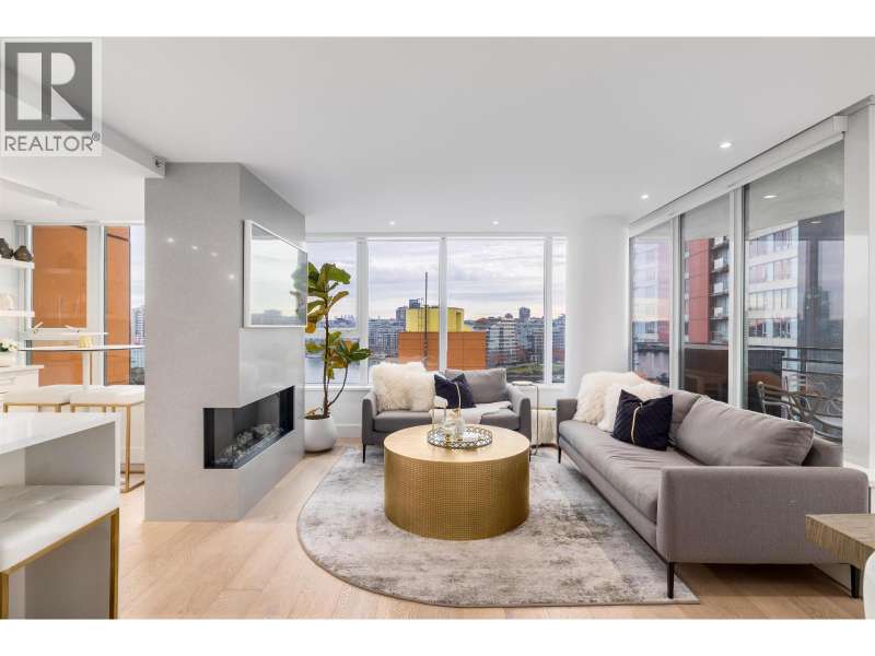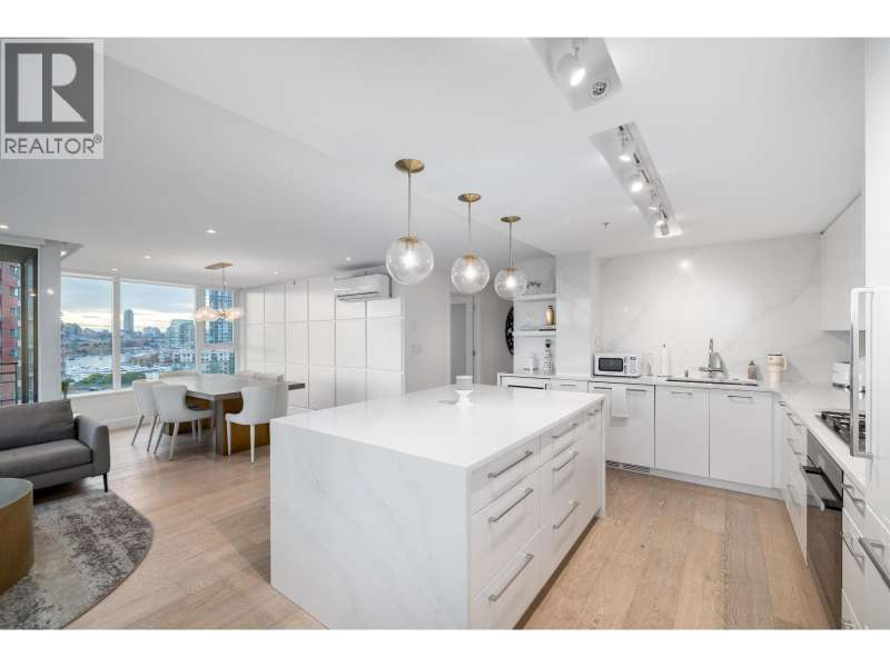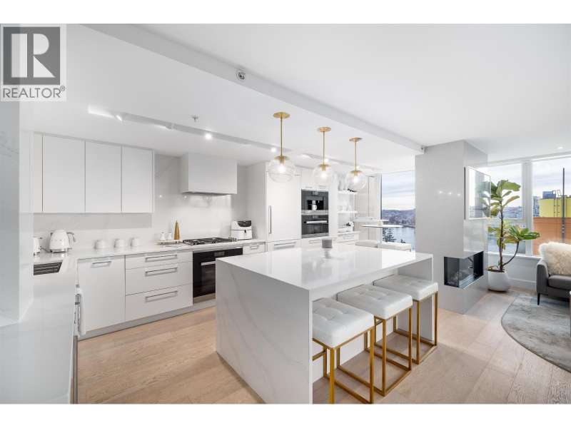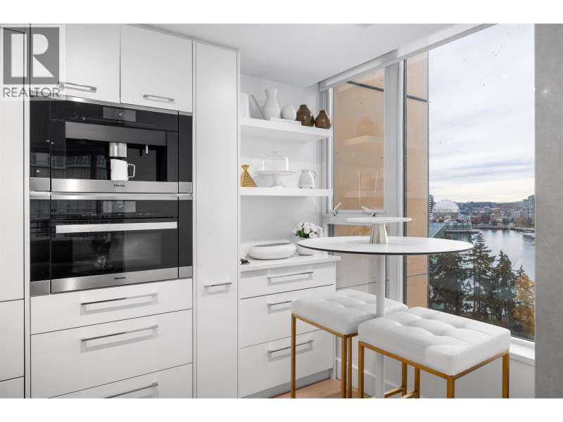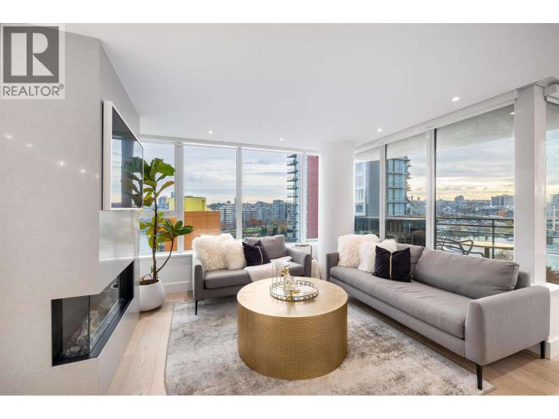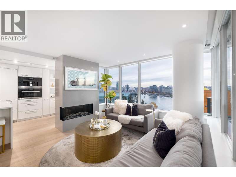 Unparalleled Waterfront Living at Cooper's Lookout. Immerse yourself in the vibrant heart of the city, steps from the seawall and entertainment, in this meticulously crafted, custom-designed home. This expansive corner 2 Bed + Den, one of the largest floor plans in the building, unveils breathtaking panoramic views of False Creek and North Shore Mountains. Indulge in luxury with features like Miele appliances in your chef kitchen, designer cabinetry and lighting, elegant hardwood floors, and spa-inspired bathrooms. Enjoy year-round comfort w/AC and cozy evenings by the fireplace. Includes 2 parking stalls (one EV-ready). World-class amenities: fully equipped gym, indoor pool/hot tub, sauna/steam room, two ten-pin bowling lanes, and a Hollywood-style theatre. (id:58403)