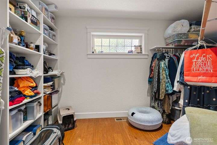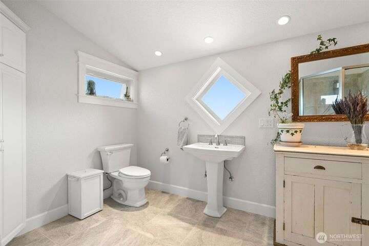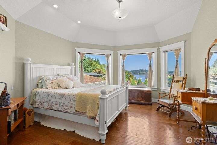 Rare two-lot property with main floor living and Puget Sound and Mt. Rainier views from your primary suite and open living areas. Vaulted ceilings, dramatic wall of windows, and a two-sided fireplace create a light-filled space. Everything you need for daily living is on one level: primary bedroom, full bath, kitchen, living, and dining; with upstairs flexibility when needed. Bridge access means no ferry, just a five minute walk to the community beach. The loft and guest bedroom with separate entrance offer options for family, hobbies, or workspace. Two legal lots mean choices: sell one or keep both for privacy. Main-floor bath connects to garage for easy beach days. Priced at $749,000 for island living with real flexibility.