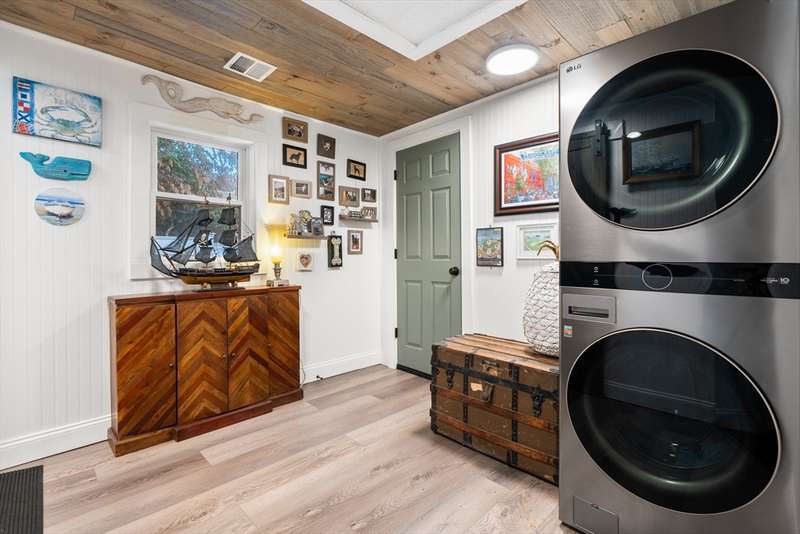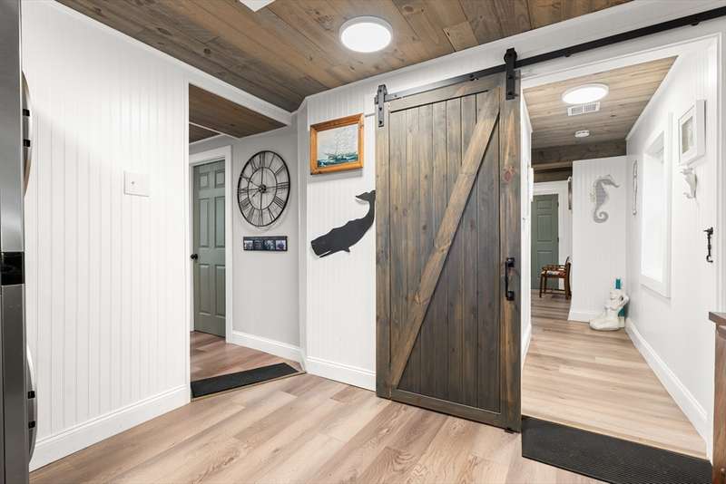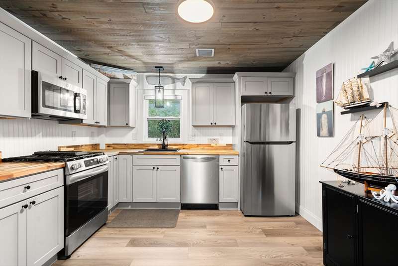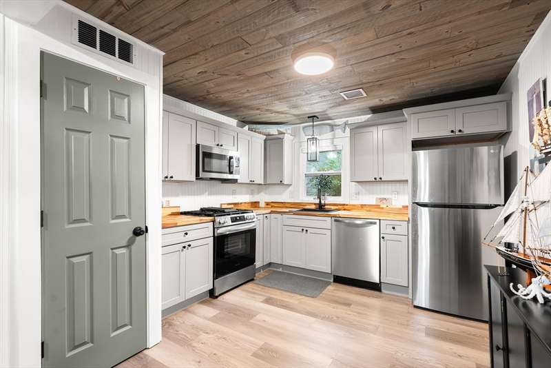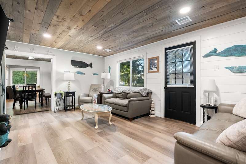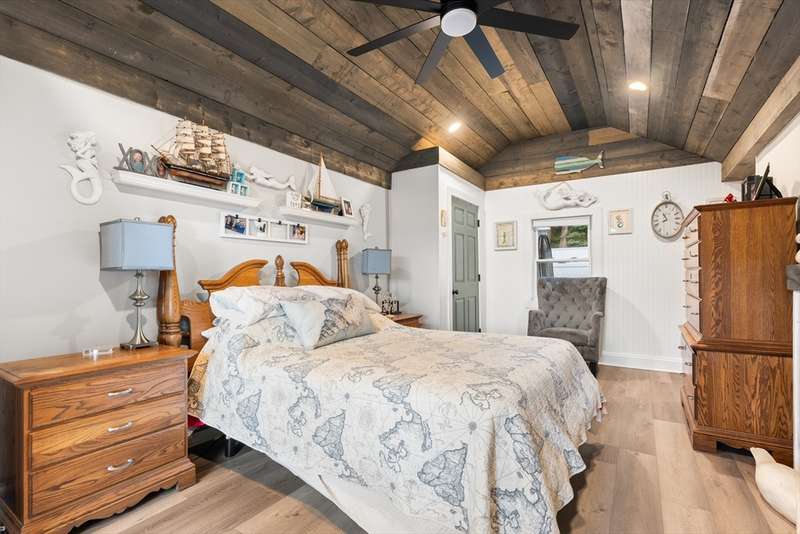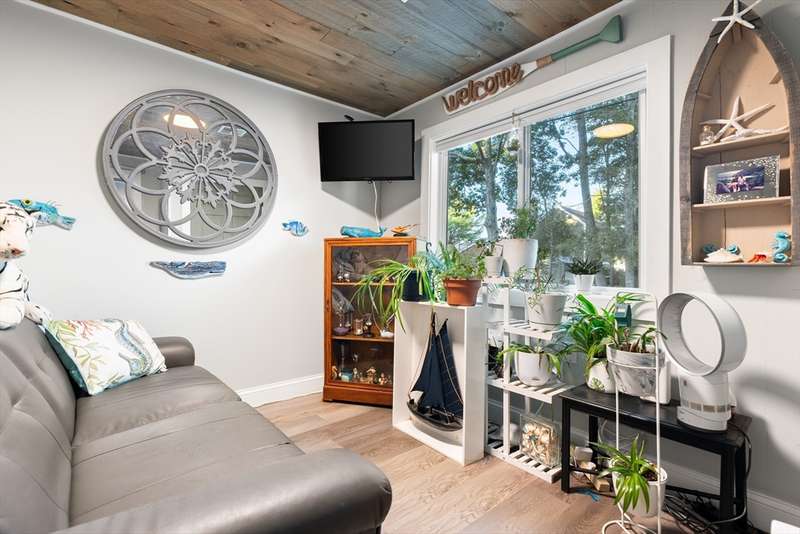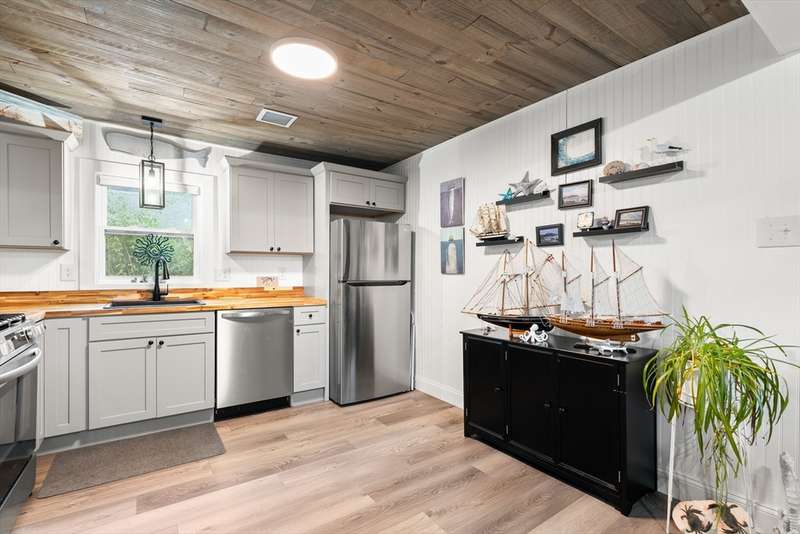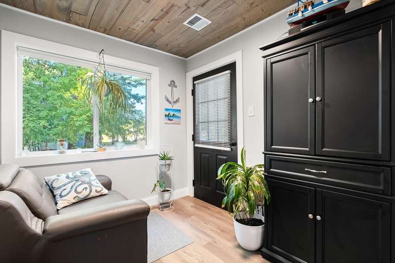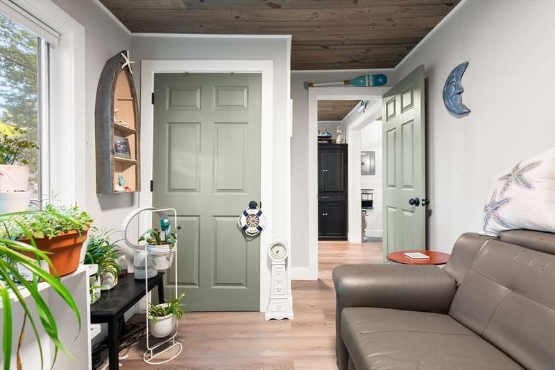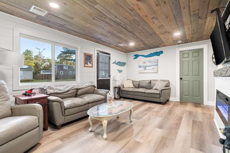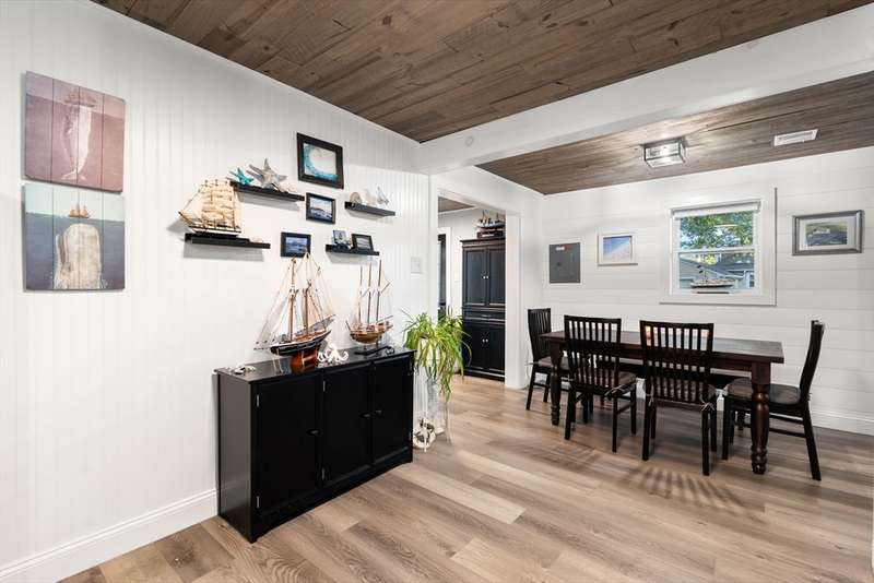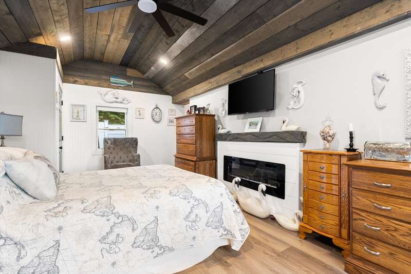 Welcome to comfortable, low-maintenance living at this stylish ranch style home with peaceful views of Mill Pond. Renovated fully in 2023, nearly everything is new! Roof, siding, windows, septic, electrical, plumbing, heating system all only two years old. Step into your spacious mudroom and leave your things behind as you move into your large updated kitchen with separate dining area. Flow seamlessly into an open concept living space. Custom woodwork throughout! The private primary bedroom offers double closets, vaulted ceiling, as well as a fireplace for maximum relaxation. Two more bedrooms, a modern farmhouse style bathroom, and dedicated laundry space complete the space. Recently added fenced yard and composite deck offers a private retreat perfect for pets. Perfect opportunity for investors, summer getaways, or retirement living alike. Enjoy life by the water without flood insurance. Don't miss your chance to tour 25 Lakeview Drive.
