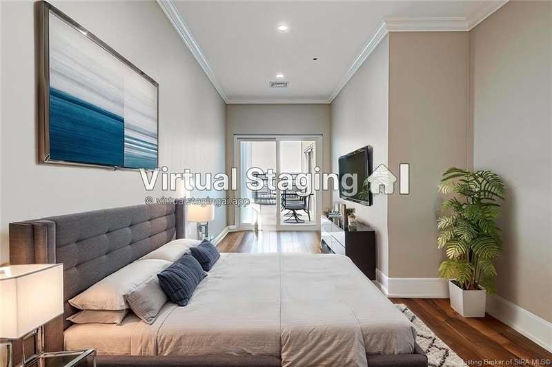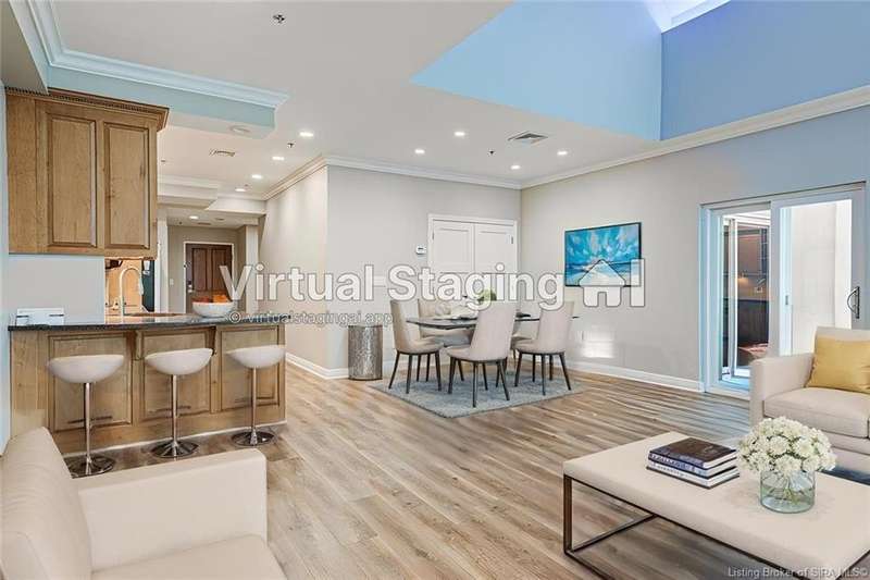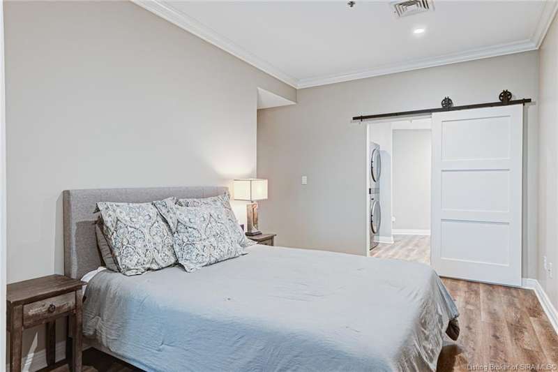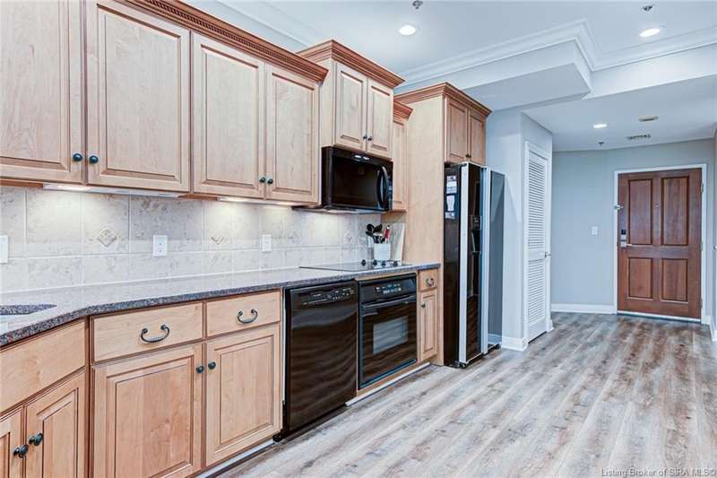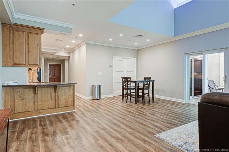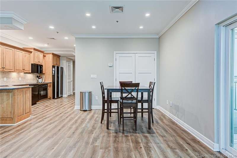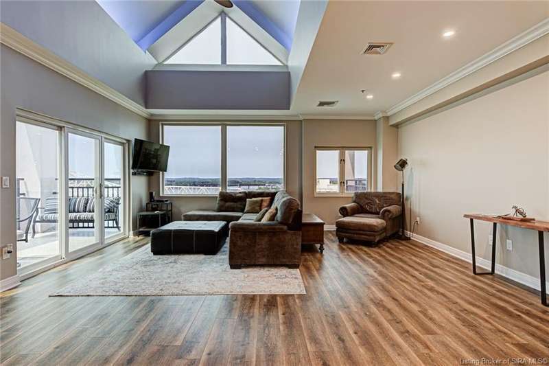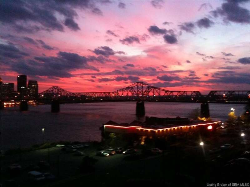 PENTHOUSE 1107- MILLION DOLLAR VIEWS of the Louisville Skyline & Ohio River! Originally 2 bed/2 bath now with 2nd bedroom incorporated into living, dining & kitchen, creating a large entertaining space w/extensive reno in 2021. Expanded Vaulted Ceiling w/LED color changing lights, ceiling fan, larger windows & updated sliding patio doors. LVP throughout! Tinted Windows & sliding glass doors. The kitchen features tall upper cabinets, granite counters, black appliances & tile backsplash. The living room opens to the balcony w/epoxy coating (2025). Dining area has pantry closet & added storage. The Primary bedroom has crown molding, ceiling fan, large walk-in closet & slider to the balcony. The original closet entry was closed to allow access via the primary bath & make it larger. The primary bath features a double floating vanity, lighted mirrors, large tile/glass shower, linen closet & laundry. The 2nd bath also has a floating vanity, tile/glass shower & linen closet. Second bedroom could be created again if desired. Deeded covered side by side parking spaces 129 & 130. Heat Pump 2024. Water Heater 2023. Premier location for Thunder Over Louisville, neighboring multiple restaurants & entertainment options. Harbours is a premier property with gated entries, fitness center, indoor & outdoor pools, grills on-site, patio/gazebo areas. Monthly HOA covers amenities, cable, high speed internet, HBO, Showtime, water, sewer, trash, water softener & master insurance.