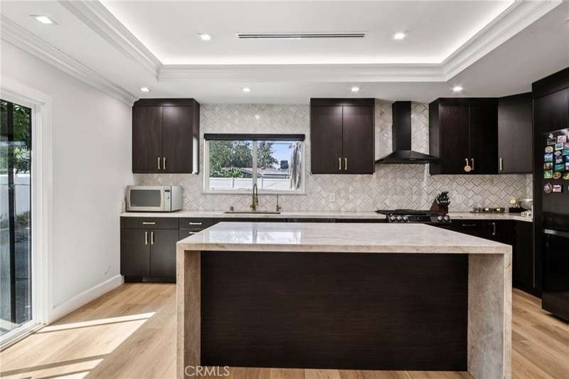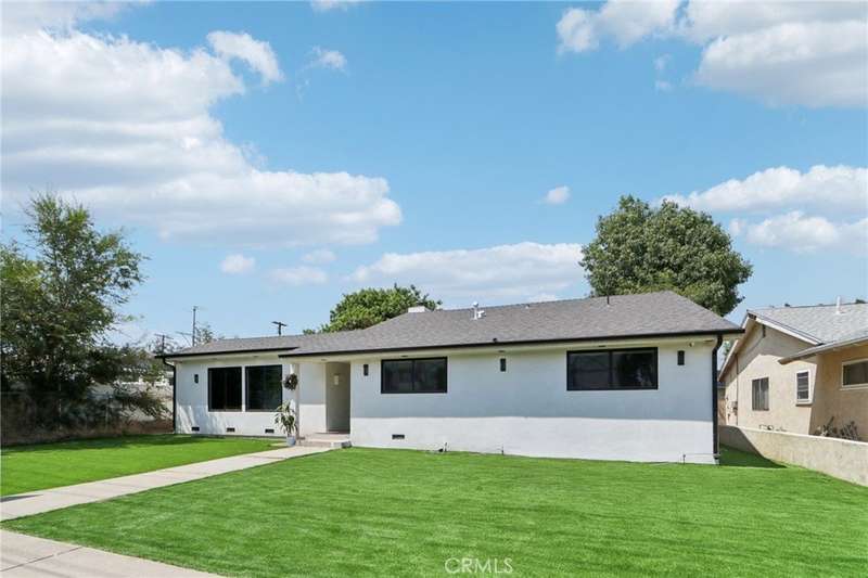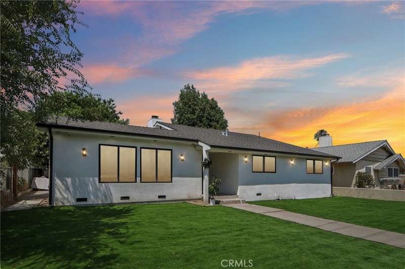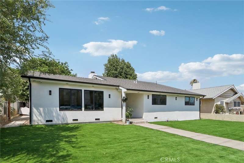 Beautifully remodeled home located in Granada Hills. Seller spent thousands of $$$’s on this Stunner!! Situated on a spacious 7,800 sqft lot, this 1,780 sqft 3 bed, 2-bath home offers impressive curb appeal with a modern black-and-white exterior, a stylish front door, and new artificial grass that stays green year-round. Step inside to find luxurious flooring throughout, a formal dining area with a custom accent wall, sleek fireplace, and designer raised ceilings. The open-concept chef’s kitchen is equipped with stainless steel appliances and a central island that opens seamlessly to the spacious family room with built-in speakers and a modern fireplace—perfect for entertaining. The primary suite includes a beautifully remodeled en-suite bathroom with dual vanity and walk-in shower, while two additional bedrooms share an updated full bath. Outside, enjoy a covered patio with recessed lighting and built-in speakers, a large backyard for gatherings, and a detached garage with alley access—ideal for an ADU (buyer to verify). There’s an extra storage structure for added convenience. Located near shopping centers with easy freeway access, this turnkey home truly has it all. Don’t miss your chance to make it yours!