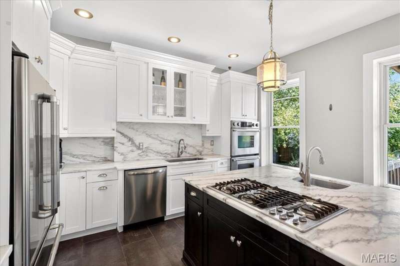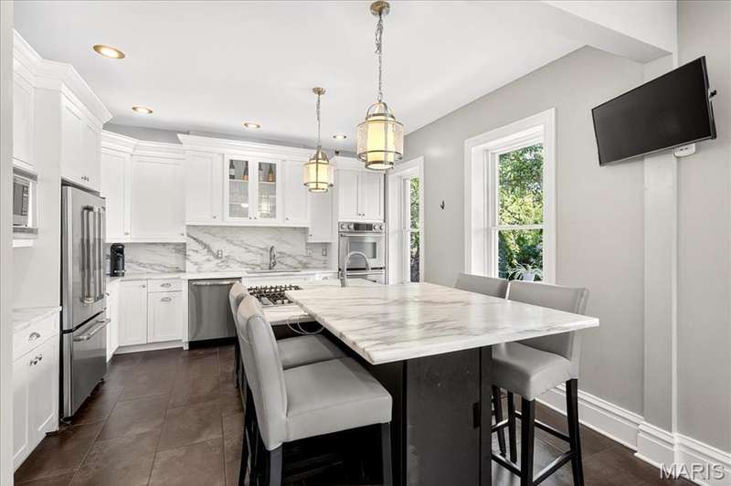 Perfectly positioned on one of the most desirable blocks of the Central West End, this stunning 4-bedroom, 3-bath historic residence blends timeless architecture with modern sophistication. With over 3,600 sq. ft. of thoughtfully designed living space, the home features soaring ceilings, hardwood floors throughout, and elegant entertaining areas that flow seamlessly from the formal living and dining rooms into the expansive, updated eat-in kitchen. Outfitted with custom cabinetry, marble finishes, premium stainless appliances, and a six-burner gas cooktop, the kitchen is as functional as it is beautiful. Upstairs, generous bedrooms provide comfort and flexibility, including a versatile walk-in closet that enhances the feel of a true primary suite. Outside, a brick-lined back patio complete with a relaxing hot tub offers the perfect private retreat. A two-car garage with guest parking adds convenience, and the walkable location places the CWEs best dining, cafs, and shops just steps away. Offering the perfect balance of historic character, modern luxury, and unbeatable lifestyle, this home defines sophisticated city living.