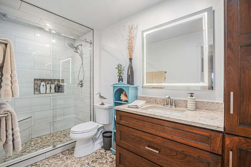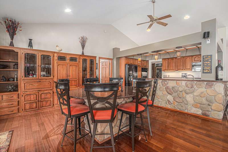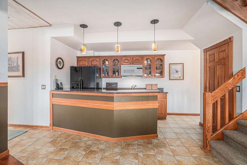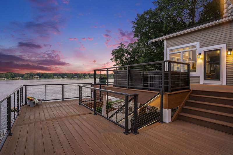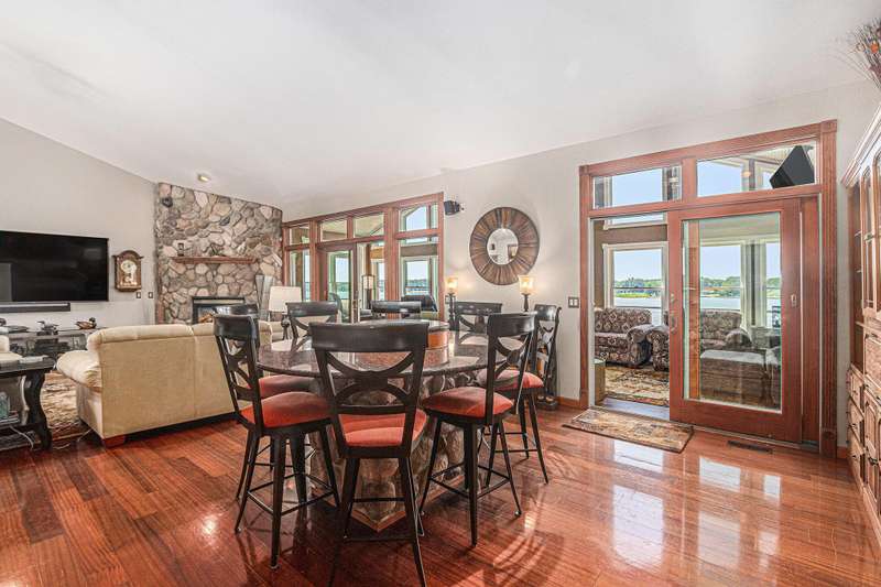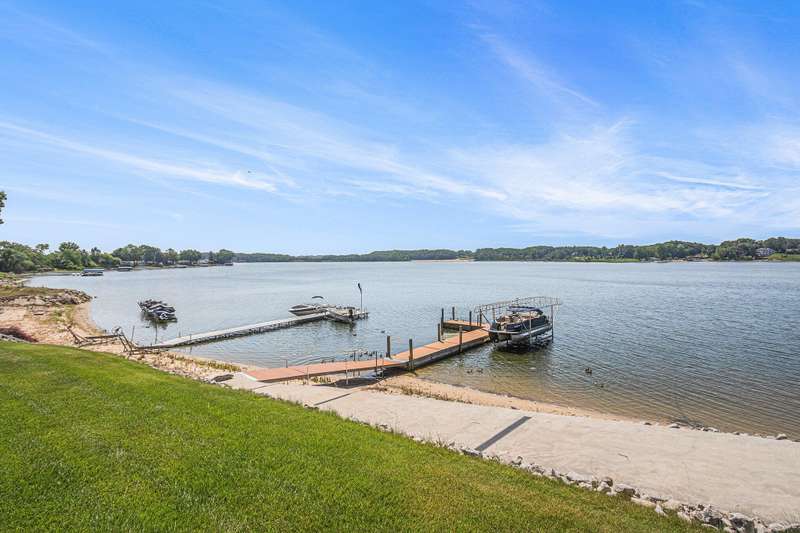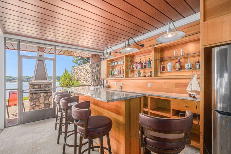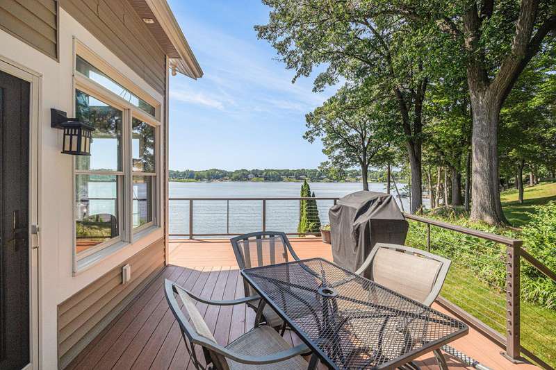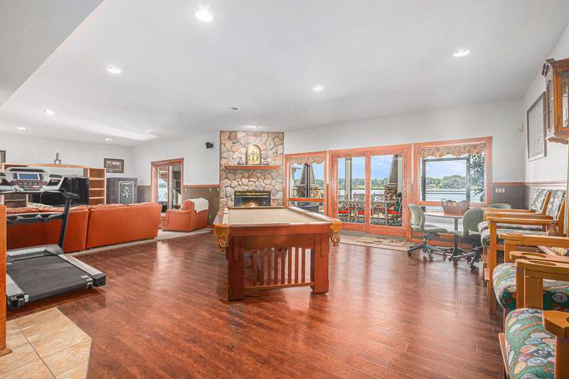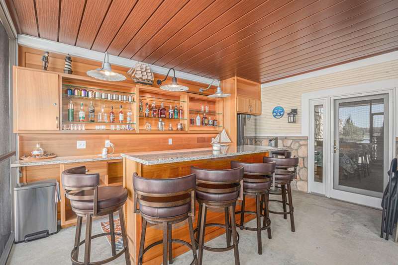 Entertain friends and family at this SPECTACULAR elevated waterfront home on 1.13 acres overlooking Mona Lake w/access to Lake Michigan. Enjoy amazing lake views from every room of this 4,350 sf lake house w/stone accents. The living room is highlighted by a stone fireplace w/built-in cabinetry, connected to a sunroom w/2-story windows, vaulted ceiling and access to over 2300sf of outdoor living space. The kitchen offers quartz counters, double oven, large dining room w/access to the office/bedroom, full bath, & laundry. The Master suite has a walk-in closet, whirlpool tub and access to the deck. Downstairs is a partial kitchen, stone fireplace, great room w/pool table, 2 bedrooms, full custom bath and storage. There is an additional screened in patio w/full built-in-bar and eating area. Outside the home you'll enjoy the additional 3-stall garage, hot tub, and concrete ramp to the floating dock. Mona Lake boat club is located directly across the lake.