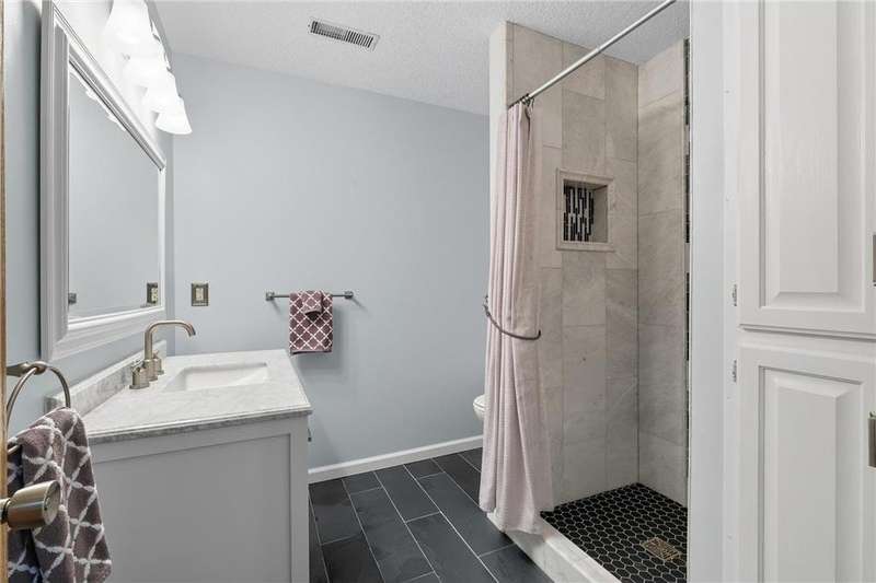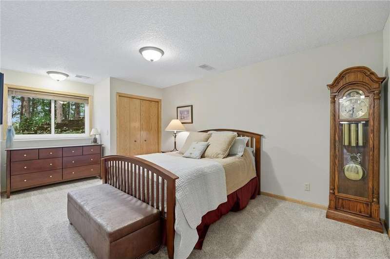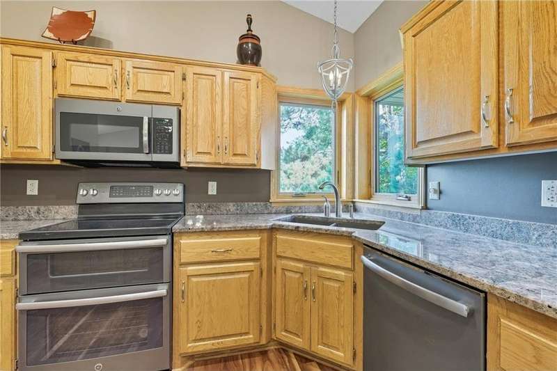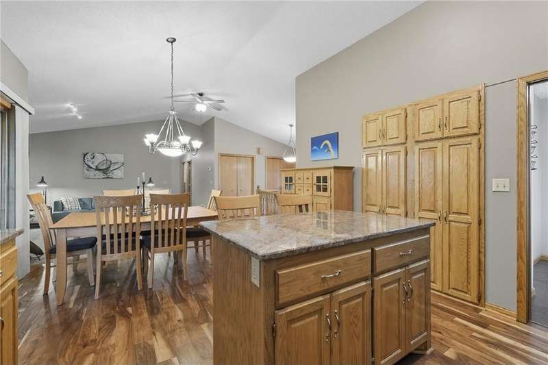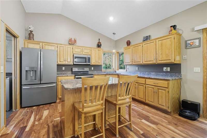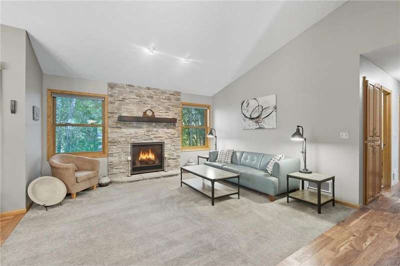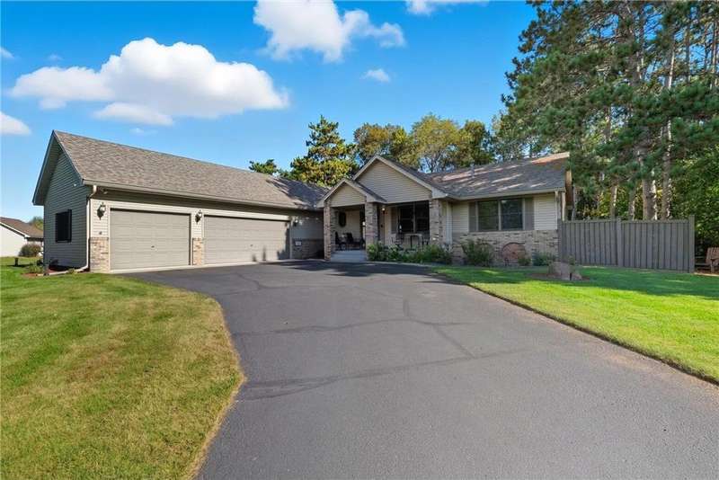 Spacious 5-Bedroom One-Story Walkout! Welcome to this beautifully designed one-story walkout home, set on nearly an acre in a highly sought-after neighborhood. Step through the foyer into an open-concept layout that seamlessly connects the kitchen, dining area, and vaulted living room featuring a stunning stone fireplace. The updated kitchen offers slate appliances, granite countertops, gleaming engineered hardwood floors, and a convenient center island. Step out onto the covered deck to enjoy your morning coffee while overlooking a peaceful, private backyard surrounded by trees—no neighbors behind you! Three bedrooms are located on the main level, along with all living facilities and a convenient main-floor laundry room. The walkout lower level features a spacious family room, a large rec/play/billiard room with direct access to the patio and backyard, two additional bedrooms, a beautifully remodeled ¾ bath, and plenty of storage space. Enjoy the outdoors from multiple spots: the covered front porch, a paver patio in the side yard, the covered patio, or the deck overlooking your wooded backyard. The oversized three car garage, has room for a fourth car or your toys! With newer mechanicals, newer windows, a new roof, an irrigation system, and much more, this home is move-in ready and waiting for you. Welcome home!