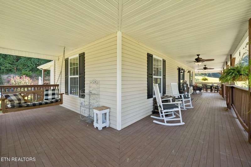 ''Welcome Homestead'' Almost 8 Acres of unrestricted land in between Knoxville and Sevierville; 2960 sq ft home enhanced with a 3/4 wrap around porch; its own spring water with 3 spring fed ponds stocked; small barn; portion cleared with more if need be to expand your pasture for your future homestead. The fiberglass pool with a surround patio awaits your floats. Entering this farmstyle home you are greeted to hardwood flooring; vaulted ceilings; a bedroom on main floor with a living area flowing into the kitchen area offers 3 tone custom maple cabinetry; granite counter tops; composite granite double sink; newer appliances; and a center island; laundry is conveniently located for life ease. Sweeping upstairs on hardwood flooring, there are 3 updated bedrooms including a large master suite area. New roof in 2020; new tankless water heater in 2024; one new heating/cooling unit installed in 2024. There is also a separate septic system with another electric pole for another home. Property is ready for your small farm and peace. 36 miles to Dollywood and University of Tennessee is 25 miles from this oasis of peace. ''Come On Homestead'' Buyer to verify information before making an informed offer.