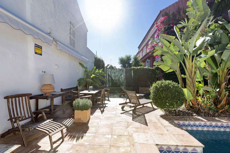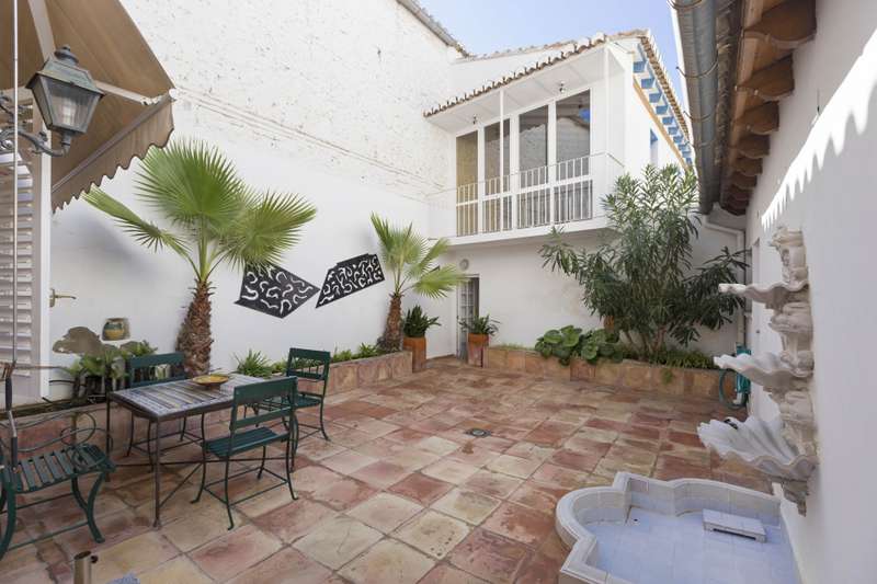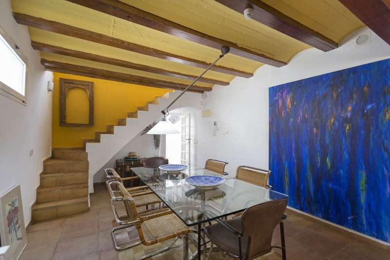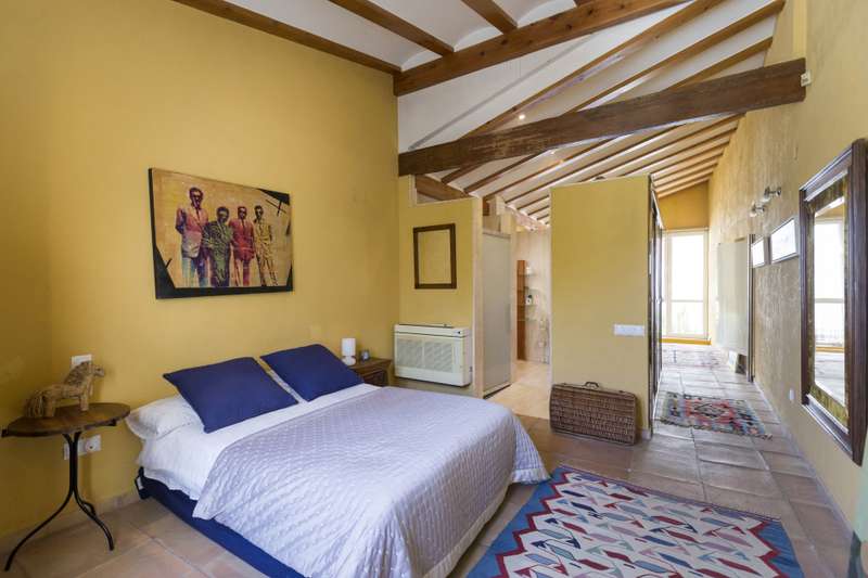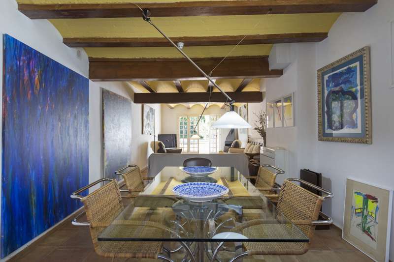 This charming house benefits from a surface of more than 400m2 where the aim has been to preserve the tradition and originality of its construction including more modern facilities. Details such as the indoor carpentry in Mobila wood, the impressive main door, the exposed wooden beams and the attic area have been kept during the renovation. The main level consists of a living-dining room equipped with a fireplace, kitchen, bathroom and a room that is being used as a library. The first-floor houses two bedrooms and the master bedroom, dressing room and bathroom, as well as a hallway with access to a charming terrace. The most outstanding area is the patio with terracotta flooring, crowned by a beautiful fountain and adorned with plants. From this area there is access to the summer dining-room and a porch with garden and swimming pool. It includes a guest area on the second floor which accommodates a cosy living room, bedroom and bathroom.