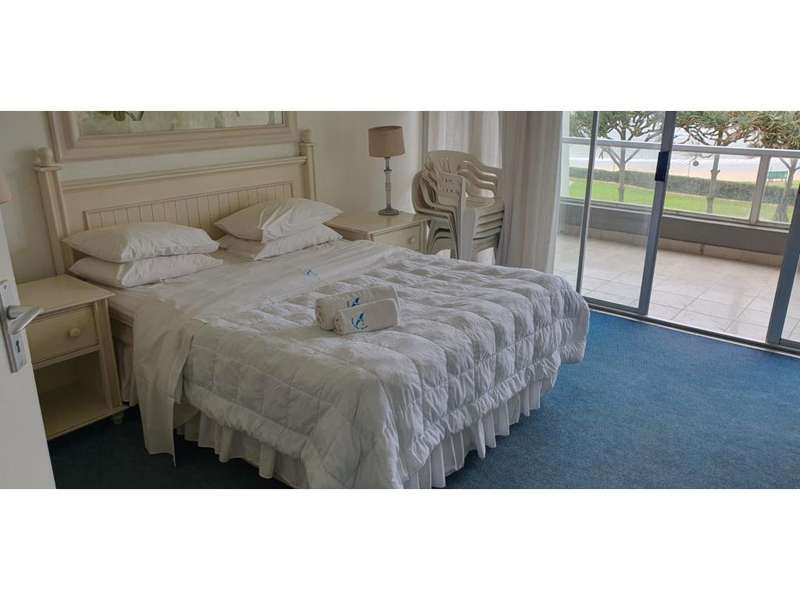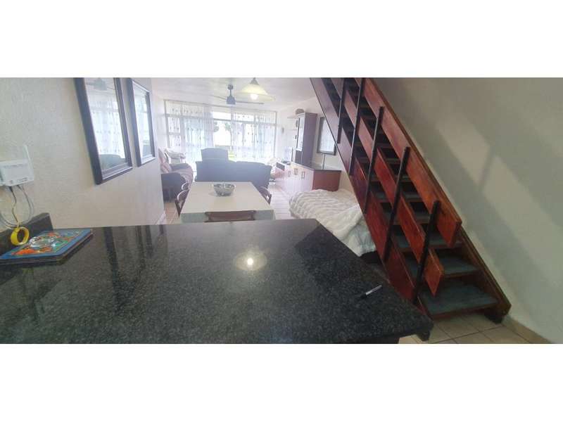 Inyoni Rocks cabanas is the heart of Toti with the location everyone loves. The Cabanas are situated right on the Amanzimtoti main beach, making it easy to access the beach and all its amenities. You also have access to the communal braai area and sparkling blue swimming pool. Lovely terrace for kids to enjoy themself. PLEASE NOTE NOT WHEELCHAIR OR PET FRIENDLY as it is a duplex apartment. The beach is a few steps away from the unit closer to the blue ocean than INYONI is impossible. The unit is 114 sq. It has two bedrooms and two bathrooms upstairs with the main en-suite. Downstairs you face a lovely kitchen with granite tops a guest bathroom, dining and lounge open plan walking out on a lovely green lawn where the kids can enjoy themself while mom and dad relax on the patio watching them. There are only a few ground floor units with a direct 180-degree seaview and is very famous for investment holiday letting so why not invest and have a free holiday or weekends? Please call Rita to view it today and avoid disappointment.