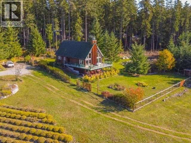 Stunning home with fantastic OCEAN views over Georgia Strait to Vancouver Island on Texada Island. Serenity and peace blanket this 22 acre gem that offers a 14 year old 3000+ square foot, 3 level home. Inside it offers a 640sf primary bedroom with a sitting area, walk in closet and a high vaulted ceiling. On the main enjoy two bedrooms, a well laid out kitchen and a huge living room with 18' ceilings and wood burning stove. The basement contains a bright large family room, second wood stove, walk out to covered patio and two partially finished storeroom/workshops. Once captivated by the inside, walk out to the 22 acre grounds with two outbuildings, one finished, the other 70% done. Neither are visible from the main home. There is a pond that retains water year round, and an extensive lavender harvest, beautifully fully fenced gardens with fruit trees and more. This estate must be seen to be fully appreciate it's uniqueness. (id:2493)