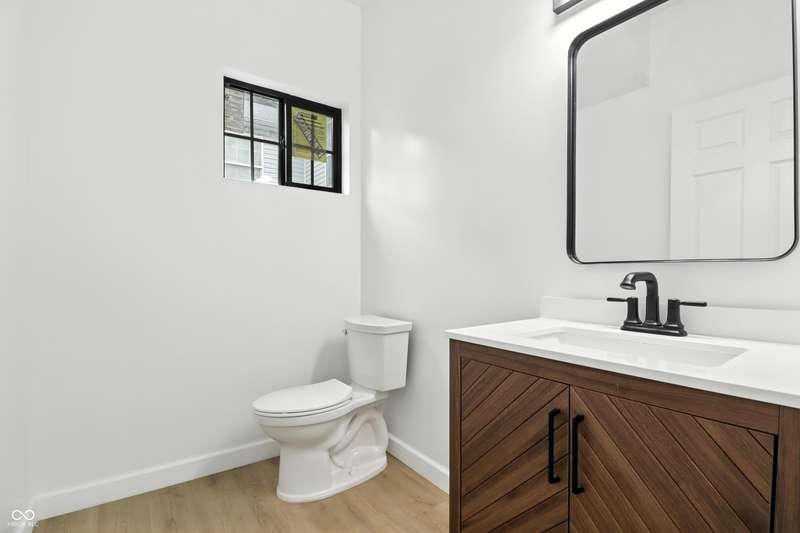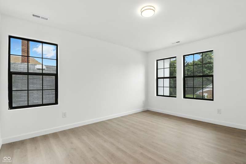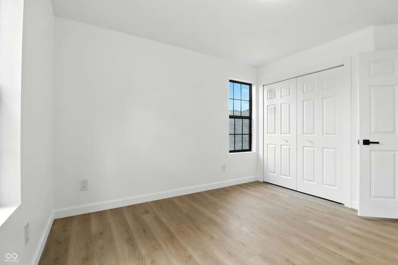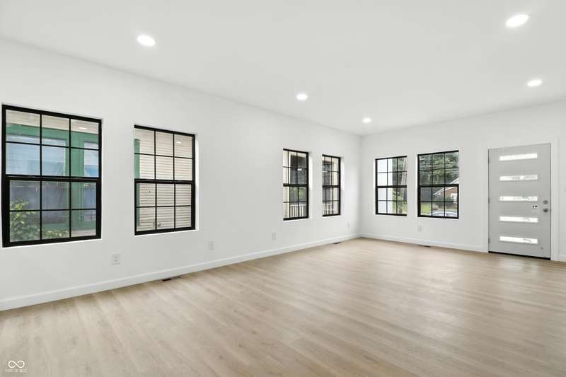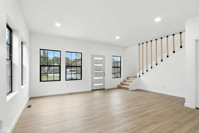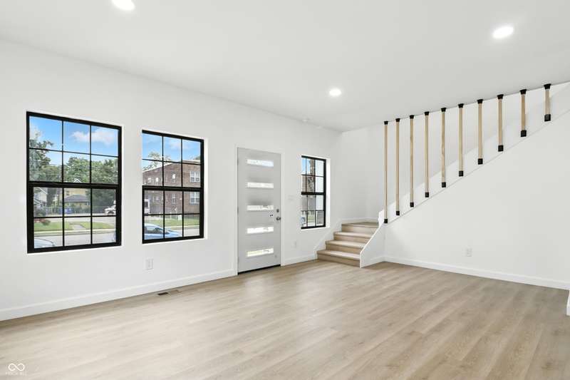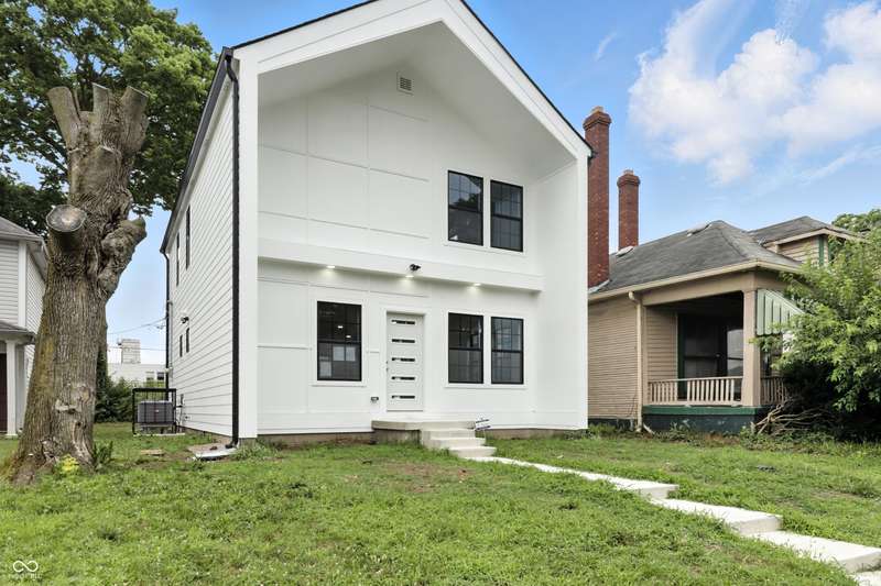 Discover this fantastic new construction home, completed in 2025 and ready for its first owner! This 3-bedroom, 2.5-bathroom property boasts an inviting, spacious living area that opens to the kitchen, perfect for entertaining. Throughout the main living spaces, you'll find ceilings illuminated by ample lighting. The contemporary black windows provide a sophisticated touch to the exterior and interior. Upstairs, stylish handrails lead to the second floor, featuring a comfortable master bedroom with its own private bathroom and two additional well-sized bedrooms. A significant bonus: the garage foundation is already prepared in the back, allowing you to easily complete a garage or utilize the space for additional parking. Its excellent location puts you close to downtown Carmel, the Children's Museum, local coffee shops, and a variety of dining options.