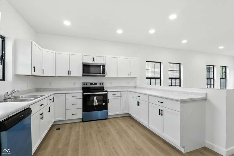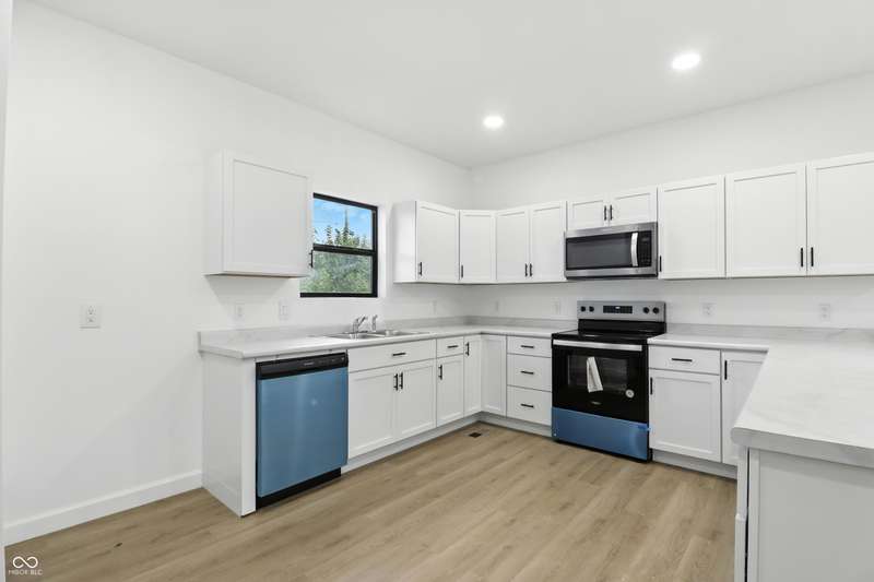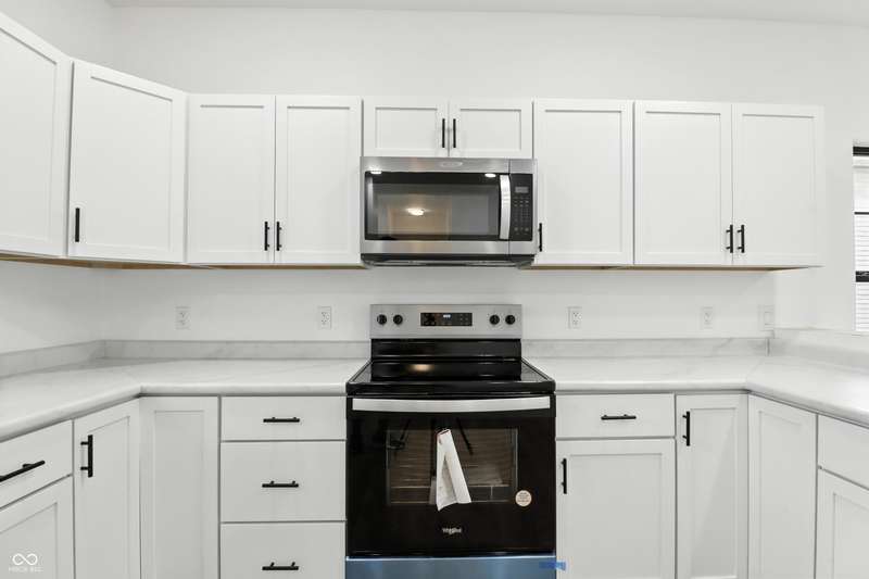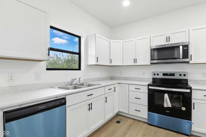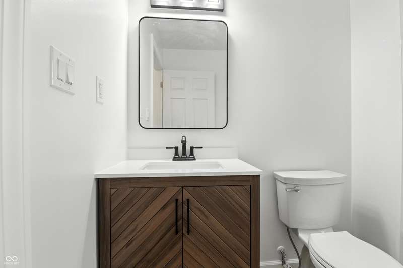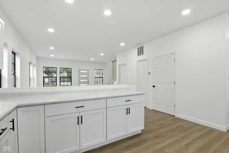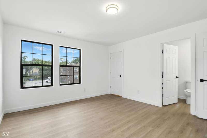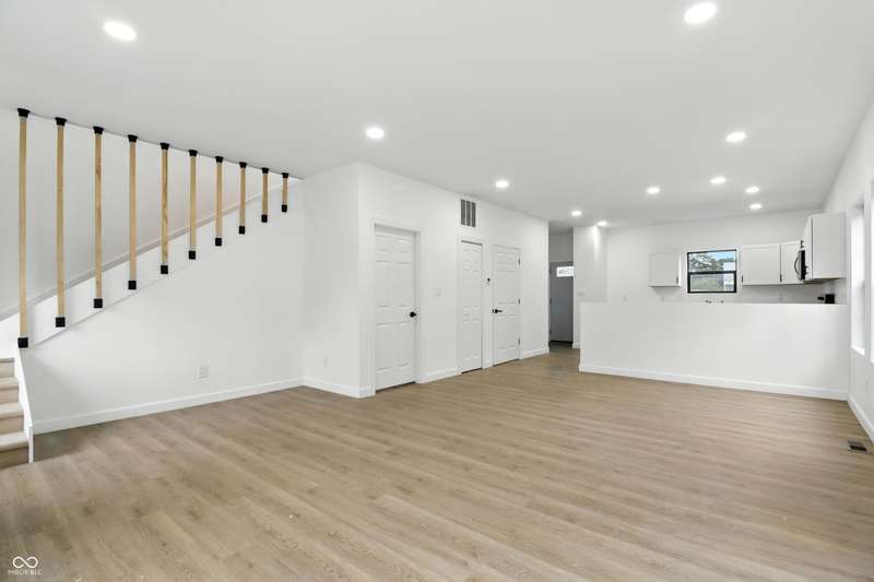 Discover this fantastic new construction home, completed in 2025 and ready for its first owner! This 3-bedroom, 2.5-bathroom property boasts an inviting, spacious living area that opens to the kitchen, perfect for entertaining. Throughout the main living spaces, you'll find ceilings illuminated by ample lighting. The contemporary black windows provide a sophisticated touch to the exterior and interior. Upstairs, stylish handrails lead to the second floor, featuring a comfortable master bedroom with its own private bathroom and two additional well-sized bedrooms. A significant bonus: the garage foundation is already prepared in the back, allowing you to easily complete a garage or utilize the space for additional parking. Its excellent location puts you close to downtown Carmel, the Children's Museum, local coffee shops, and a variety of dining options.