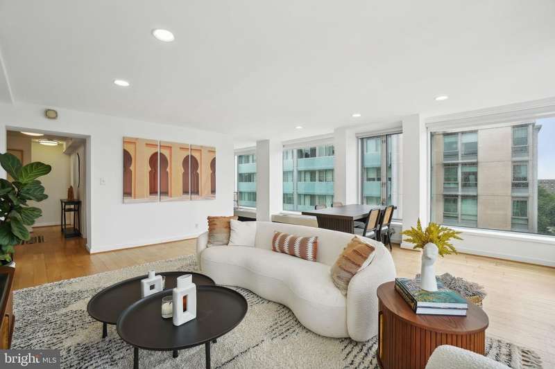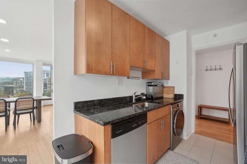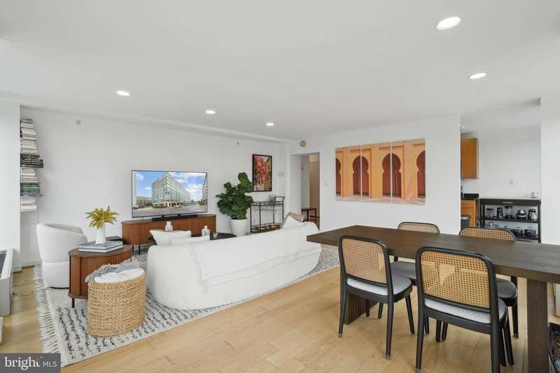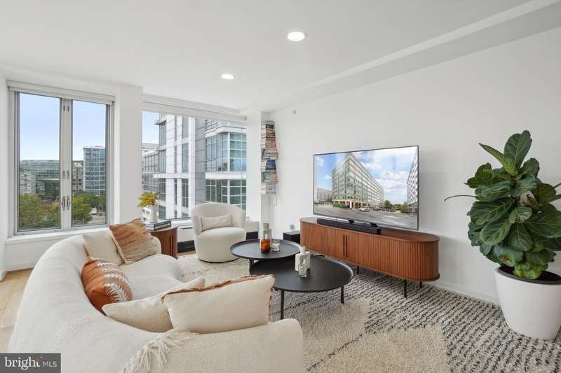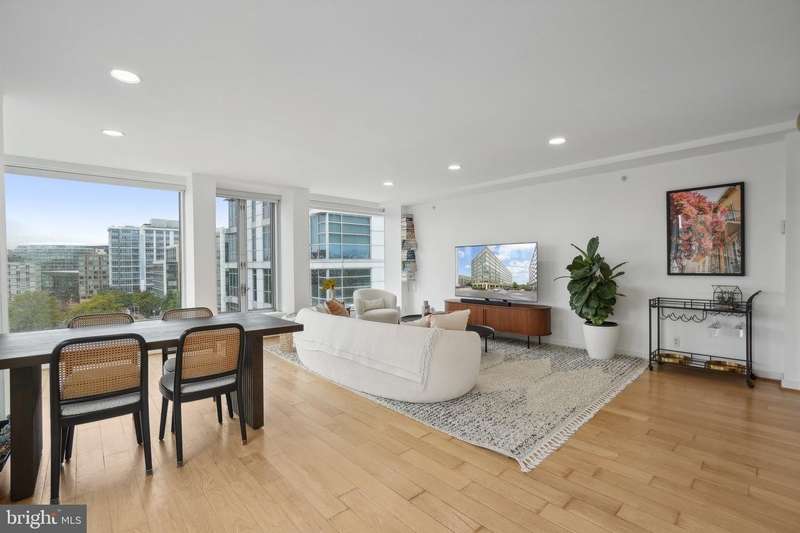 Sophisticated Urban Living in the Heart of Southwest Waterfront This exceptional corner-unit condo offers refined city living with captivating skyline views and the convenience of gated parking. Expansive floor-to-ceiling windows envelop the living space and primary suite, bathing the interior in natural light and showcasing the vibrant surroundings. The open-concept layout is enhanced by soaring ceilings and rich hardwood floors throughout, creating a sense of spacious elegance. The gourmet kitchen features sleek granite counters, abundant cabinetry, and stainless steel appliances-ideal for both entertaining and everyday living. The generous bedroom includes a walk-in closet, while an in-unit washer and dryer and ample hallway storage provide added functionality. Located in the sought-after Waterfront Tower, residents enjoy a suite of amenities including a concierge, fitness center, community laundry, and an expansive garden patio with grilling areas. Just steps from the Southwest Waterfront Metro, across from Safeway, and within walking distance of The Wharf, Nationals Park, Audi Field, and Arena Stage, this residence offers unparalleled access to the best of D.C.'s dining, culture, and entertainment. A true gem in one of the city's most dynamic neighborhoods.
