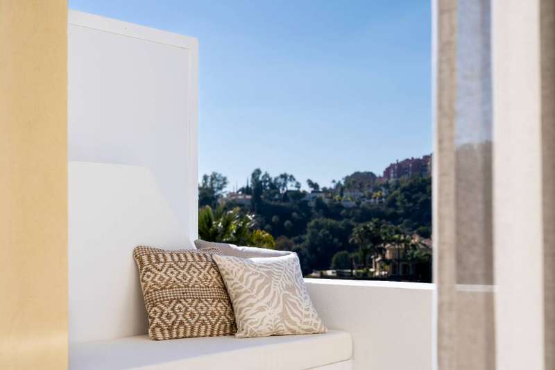 Located within the gated community of La Quinta Hills, Maison Bohème is an exceptional duplex penthouse that offers an unparalleled lifestyle in Benahavis. Meticulously renovated to the highest standards, this property epitomizes luxury living surrounded by the serene landscapes of La Quinta Golf Course. The first floor welcomes you with an expansive living area seamlessly connected to a gourmet kitchen featuring premium Smeg appliances. Step out onto the terrace to enjoy views to hills and the sea. A guest toilet adds convenience to this level. Ascending to the second floor, discover three tranquil bedrooms, including a master suite with an en suite bathroom, while the other two bedrooms share a beautifully appointed bathroom. Enjoy the comfort of floor heating in the bathrooms throughout this floor. Crowning this stunning home is the third-level roof terrace, offering breathtaking views of the golf course and sea, along with a designated dining and barbecue area for memorable ou