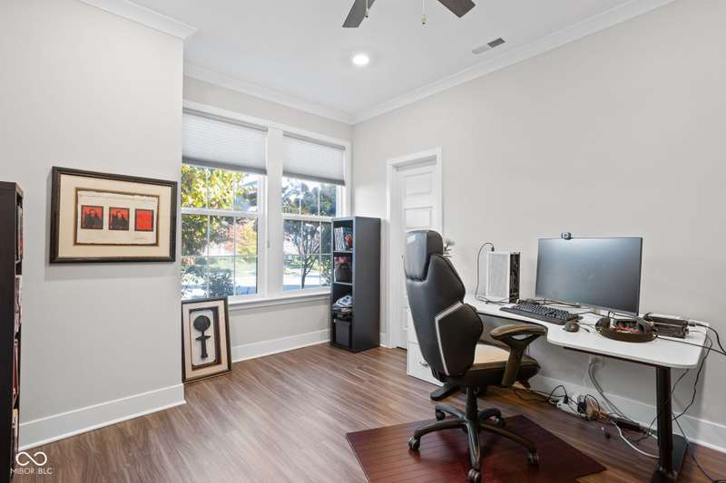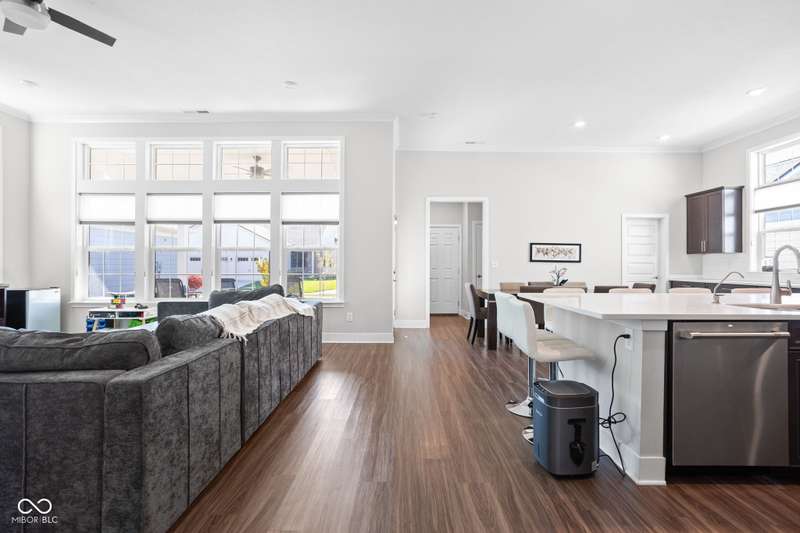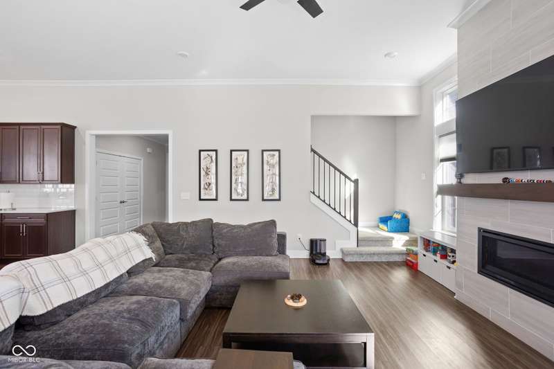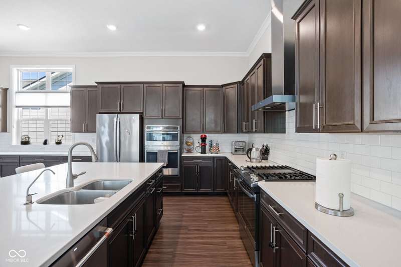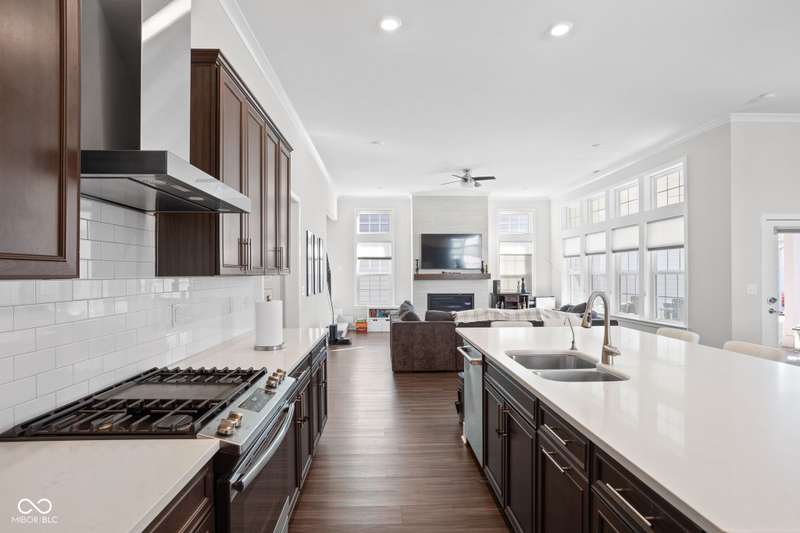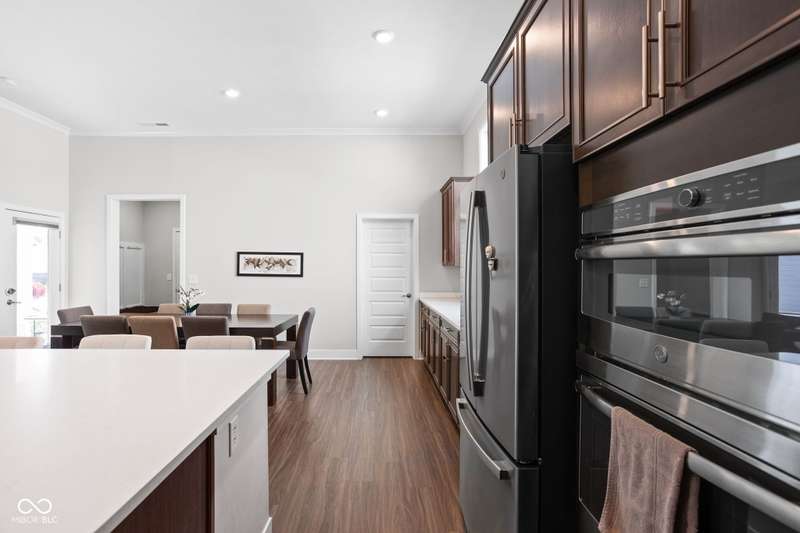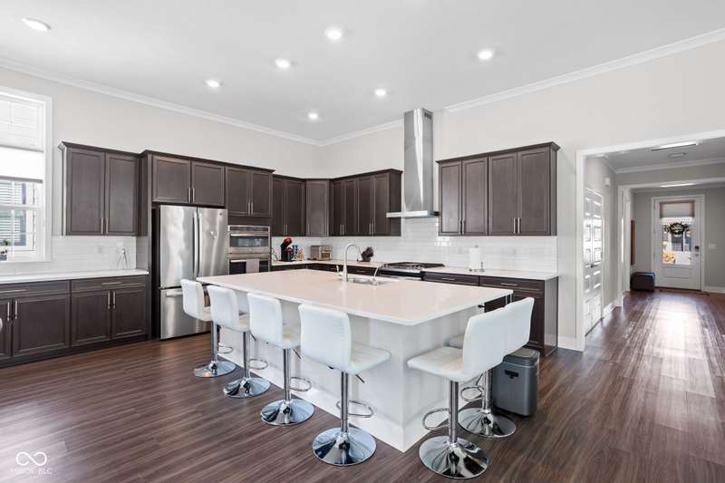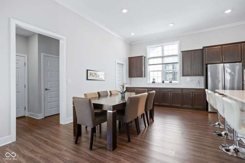 Welcome to 1515 Jensen, where contemporary sophistication meets exceptional craftsmanship in one of Carmel's most desirable neighborhoods. This remarkable home blends style, comfort, and quality with thoughtful updates and high-end finishes throughout. From the welcoming entryway, every detail reflects careful design. The gourmet kitchen is the heart of the home, showcasing rich dark wood cabinetry that extends to the ceiling, gleaming white quartz countertops, and a timeless subway tile backsplash. Stainless steel appliances, abundant storage, and a large island with seating make it perfect for cooking and entertaining alike. Hardwood-style flooring flows seamlessly through the main level, complemented by soft gray walls and white trim that create a warm, upscale ambiance. The open-concept layout connects the kitchen, dining area, and great room, where soaring vaulted ceilings and expansive windows fill the space with natural light. A convenient main-floor laundry room with matching cabinetry adds function without sacrificing style. Upstairs, a versatile loft offers the perfect space for media, work, or play. The luxurious primary suite features dual vanities, a walk-in shower, and elegant large-format tile, while additional bedrooms provide generous size and organized closets. Outdoor living shines with a beautifully landscaped yard featuring a raised garden bed, a nectarine tree that produced its first fruit in 2025, and an apple tree for seasonal harvests. A fully integrated sprinkler system keeps the landscaping lush, while a whole-house humidifier and HVAC UV sanitizer promote year-round comfort and clean air. Set on a picturesque tree-lined street, 1515 Jensen offers a peaceful neighborhood feel with easy access to Carmel's award-winning schools, fine dining, boutique shopping, and vibrant community life.