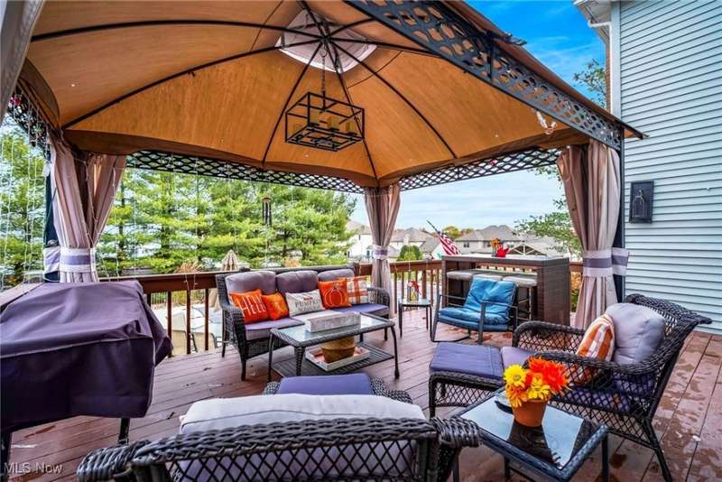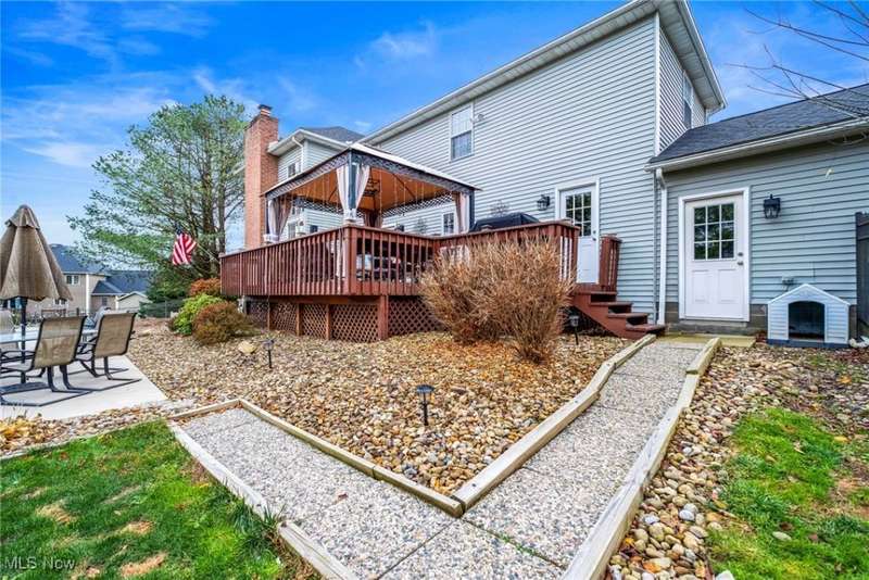 Welcome to 1050 Fox Den Trail ? a showcase of elegance and comfort in Canfield's highly sought-after Fox Den neighborhood. Known for its peaceful streets and family-friendly charm, this stunning 5-bedroom, 3.5-bath residence perfectly blends sophistication, warmth, and everyday livability. Step through the grand foyer into light-filled, open-concept spaces enhanced by new luxury vinyl flooring, crown molding, and designer lighting. The gourmet kitchen, features gleaming granite countertops, a stylish backsplash, abundant cabinetry, and brand new appliances (2025)?ideal for the home chef or entertainer at heart. A formal dining room with a tray ceiling creates the perfect setting for gatherings, while the two-story family room, anchored by a cozy gas fireplace, invites relaxation and connection. French doors open to an elegant living room, offering a quiet retreat or flexible use for work or play. A main-level bedroom adds versatility for guests, multi-generational living, or a private home office. The fully finished lower level is a true entertainer's dream?complete with a custom-built bar and direct access to its own garage, making it the perfect place to unwind or host game nights. With a 3-car garage plus a 2-car extension, there's no shortage of space for vehicles, storage, or hobbies. Step outside to your personal oasis: a saltwater pool (2022) surrounded by a fenced, landscaped yard offering both privacy and tranquility. Additional conveniences include a central vacuum, a full security system, a newer roof (2022), and brand new HVAC (2025), along with fresh paint and stylish fixtures throughout. Meticulously maintained and thoughtfully upgraded, this home delivers luxury living at its finest in one of Canfield's most prestigious communities. Opportunities like this are rare?schedule your private showing today and experience 1050 Fox Den Trail for yourself.