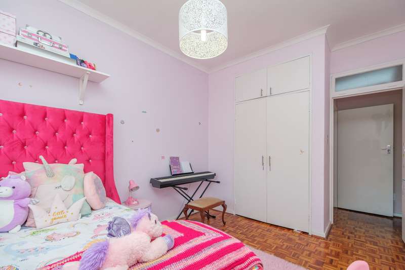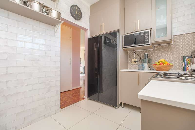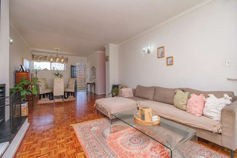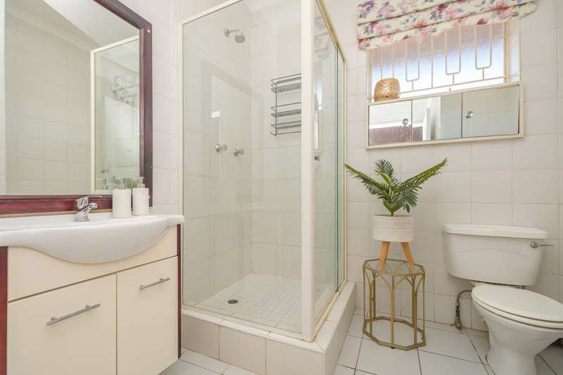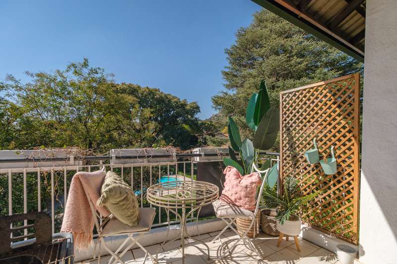This lovely spacious first floor apartment with a view of the inner court, manicured garden and sparkling pool gives you a sense of serenity and peace. 2 Bedrooms 2 Bathrooms (main en-suite) Open plan Lounge/Dining room Kitchen Space for 2 x appliances Counter top gas hob Extractor Fan Undercounter oven Parquet flooring throughout Bedrooms has views to the garden and pool 1 Covered parking close to stairs Secure communal swimming pool 87sqm Unit Levies R2 197.42 CSOS R33.95 Electricity /- R771.00 Reserve Levy R200.00 Sewerage R704.00 Electricity Basic R71.86