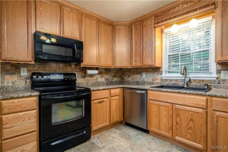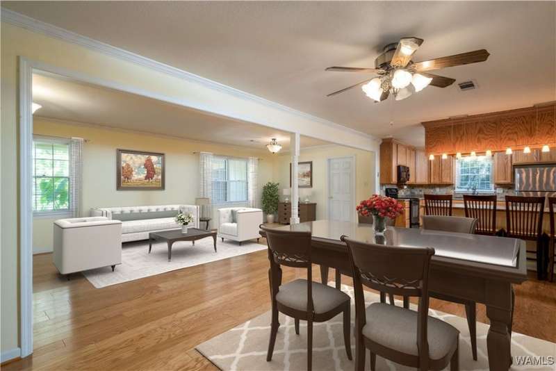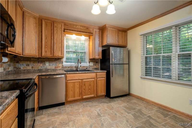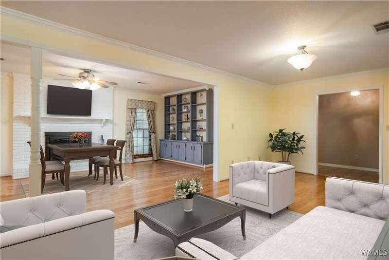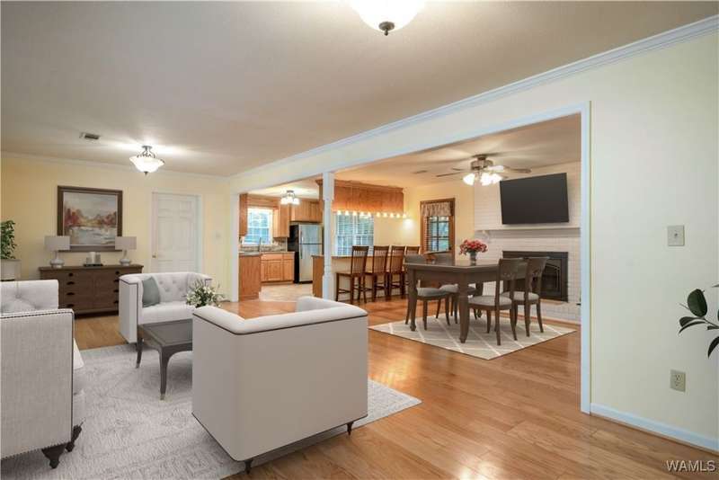 Charming 3-bedroom, 2-bathroom home featuring an open-concept layout. The kitchen overlooks the spacious living area and includes updated appliances, making it a place for both everyday living and entertaining. This home offers abundant storage throughout, along with a generously sized laundry room. Step outside to the covered back porch, made for morning coffee or gathering with friends. The backyard provides a peaceful, nature-like setting, while still offering quick access to the interstate for an easy commute. Home has been virtually staged.