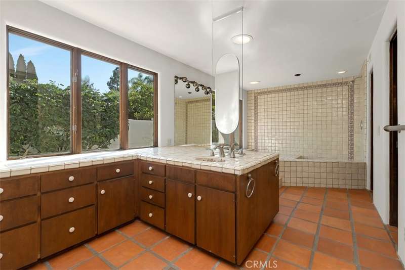 The chef's kitchen offers dual islands, abundant counter space, Spanish tile finishes, and an oversized in-kitchen dining area. A spacious laundry/utility room with skylights, storage, and an additional refrigerator adds convenience. An adjoining bonus room provides flexibility as an office, library, or optional 4th bedroom.