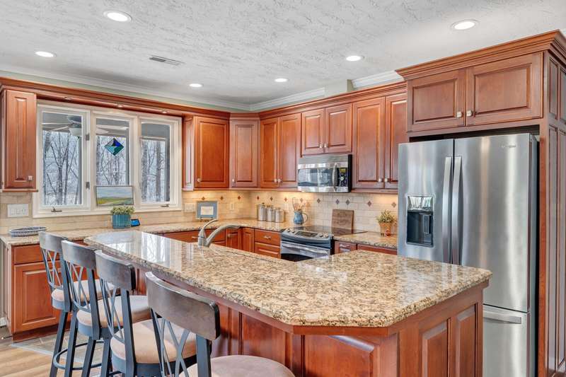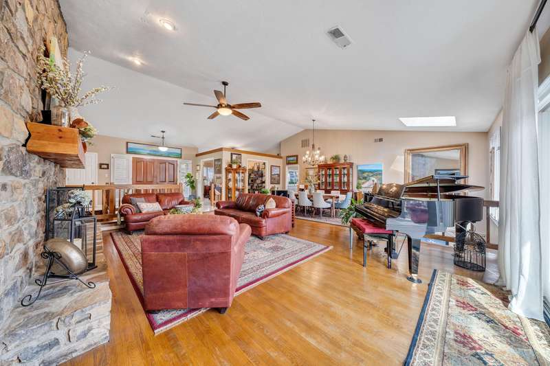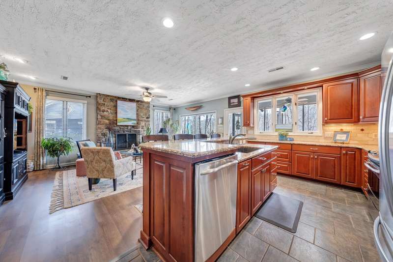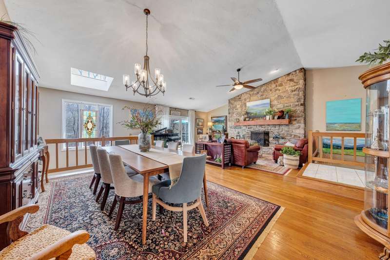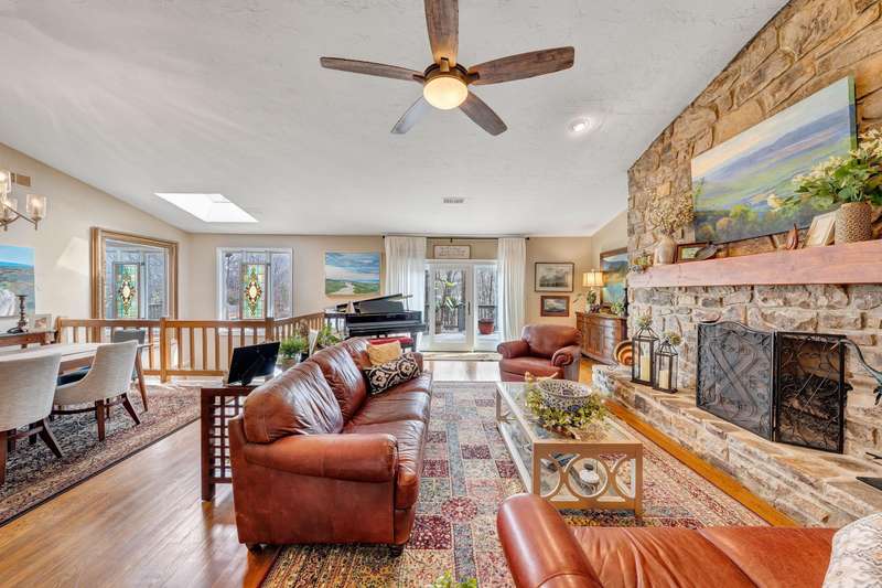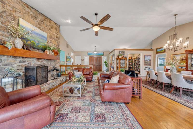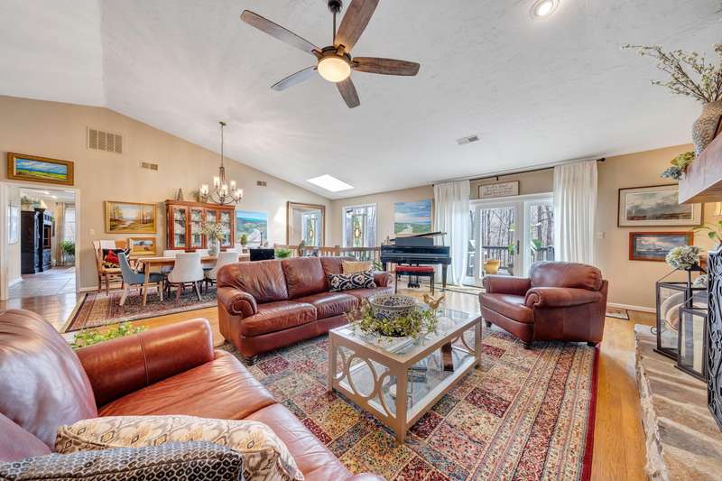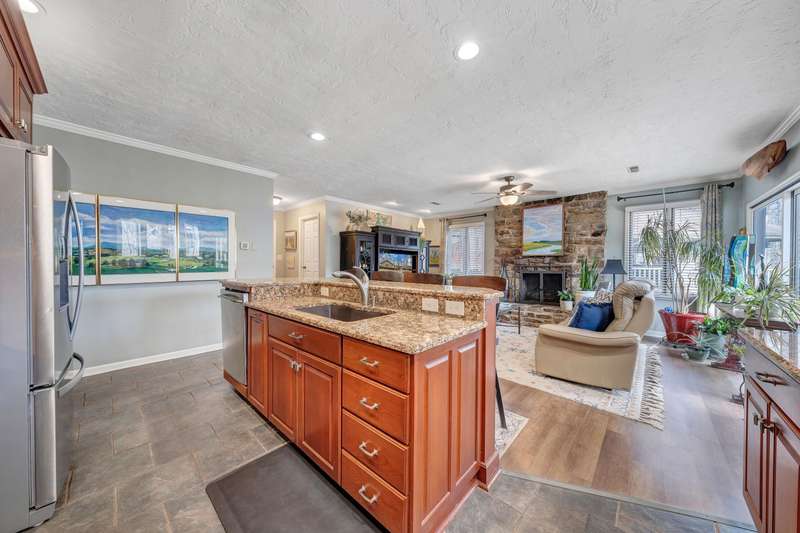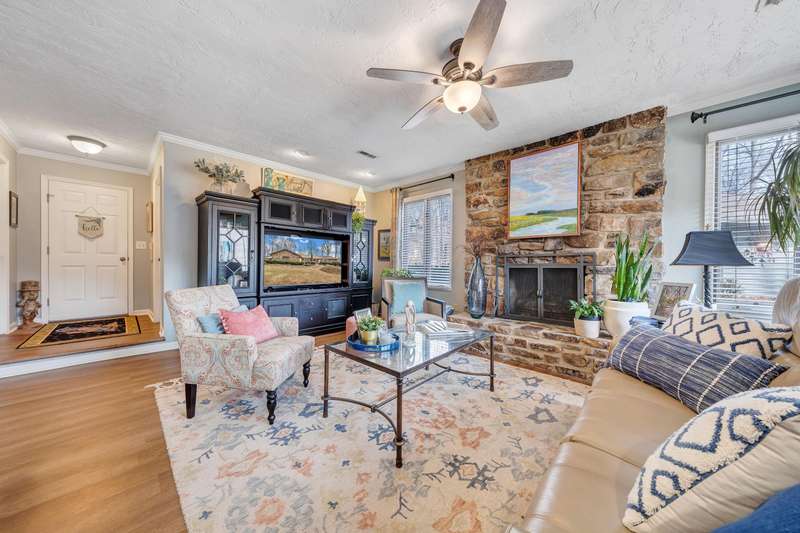Located in the desirable Hunting Hills community, this beautifully ranch offers classic charm paired with picturesque golf course views. Boasting 3 generously sized bedrooms, 3 full bathrooms, and 3 masonry fireplaces, the home blends graceful living with modern comforts. The open layout features inviting living spaces designed for both casual living and elegant entertaining, while the high-end kitchen flows effortlessly into the dining and gathering areas perfect for hosting family and friends. A dedicated office or optional fourth bedroom adds flexibility to suit your needs, whether for work, guests, or hobbies. Expansive windows and thoughtfully placed skylights fill the home with natural light, enhancing the sense of openness and tranquility throughout.