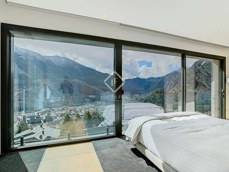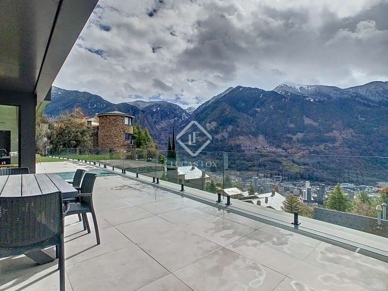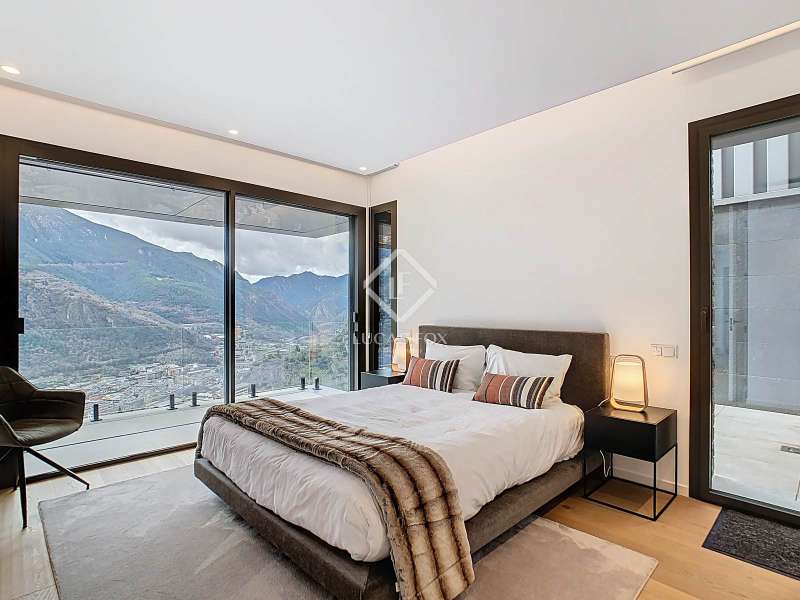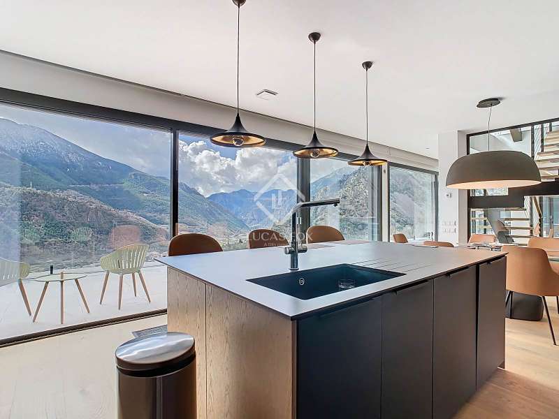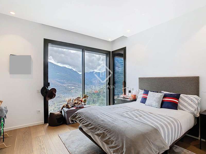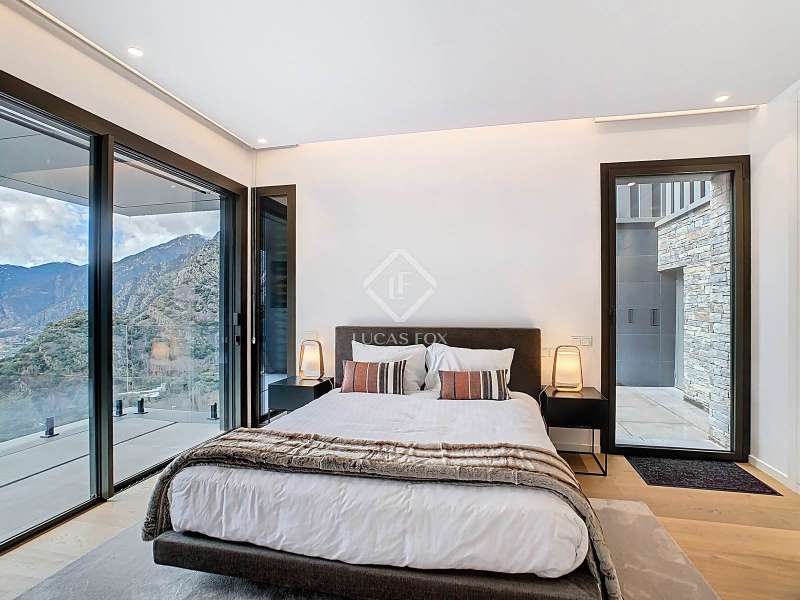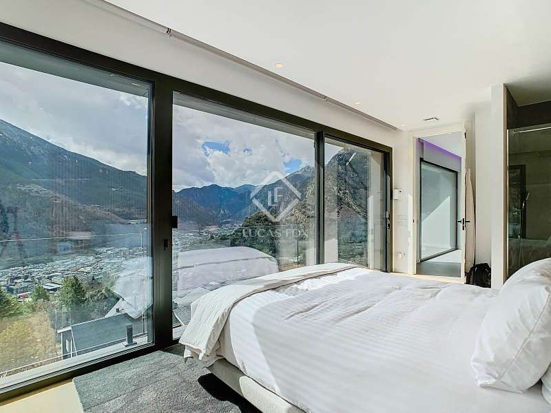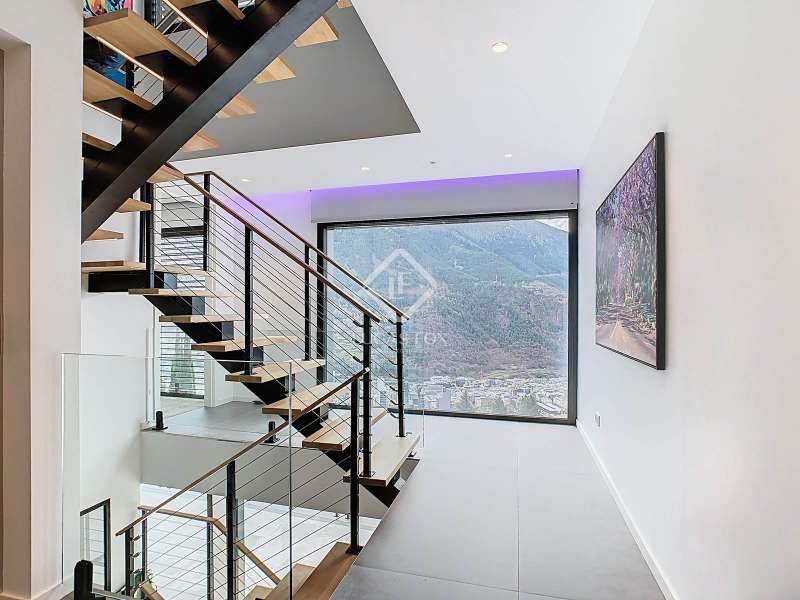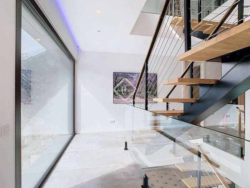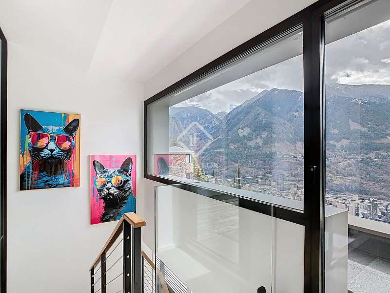 Lucas Fox presents this fantastic 523,88 m² detached house located in the sought-after Can Diumenge area, just minutes from the centre of Escaldes. The property is designed with the highest quality materials, including imported wired glass for the skylight areas, and enjoys plenty of natural light thanks to its interior design. The house is spread over 4 floors, all connected by stairs and lift. We enter the villa on the second floor, where we find a small, welcoming entrance hall that connects to the garage, which offers space for two cars. The first floor houses the night area, consisting of three double bedrooms, one of which is a suite with a dressing room, a complete bathroom, and private access to a small garden. The floor is completed by two additional bathrooms serving the other bedrooms and a terrace with exclusive access. On the ground floor, we find the spacious day area, consisting of a bright living-dining room, a wonderful open-plan kitchen fully equipped with top-of-the-line appliances, and a central breakfast island. There is also a convenient pantry with plenty of storage space and a storage room on the same floor for your convenience. A beautiful terrace allows you to enjoy the stunning views of the valley. Finally, the floor offers a 205 m² open-plan area that can be used as a gym, play area, or home theatre. This floor also includes a full bathroom, a large laundry area and the property's technical rooms. Among the features of this attractive property are the floating wooden staircase, imported wired glass, mechanical ventilation, and a dual-pump sewage system. Furthermore, all bedrooms feature built-in wardrobes and ample storage space. Please contact us for more information.