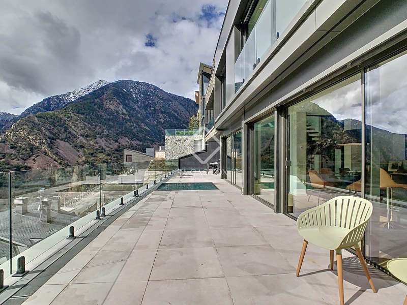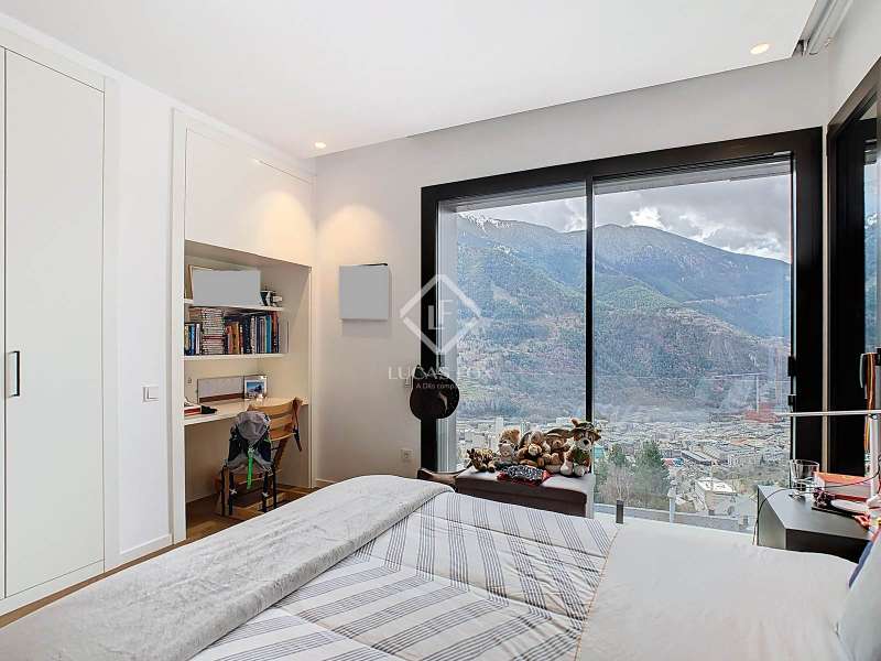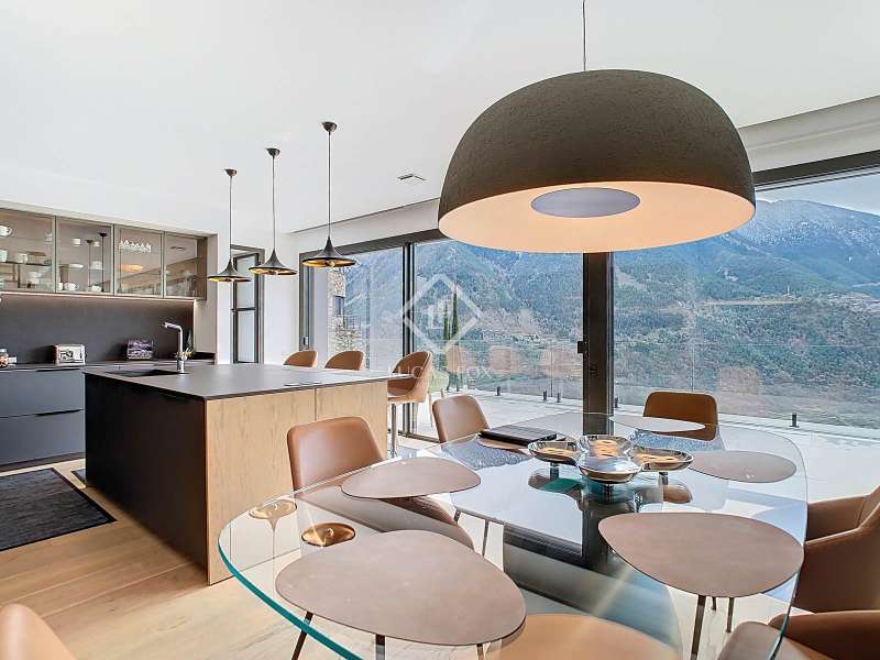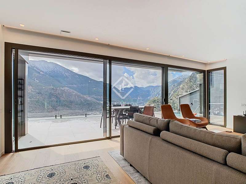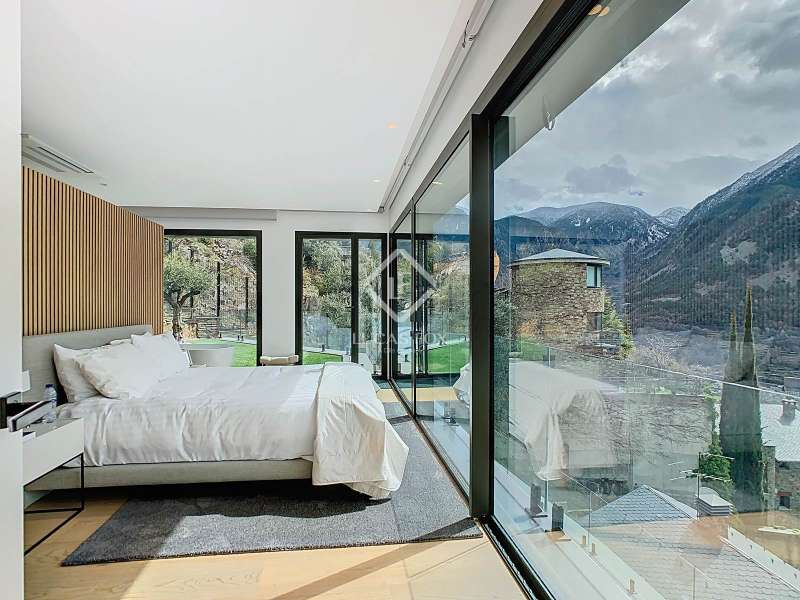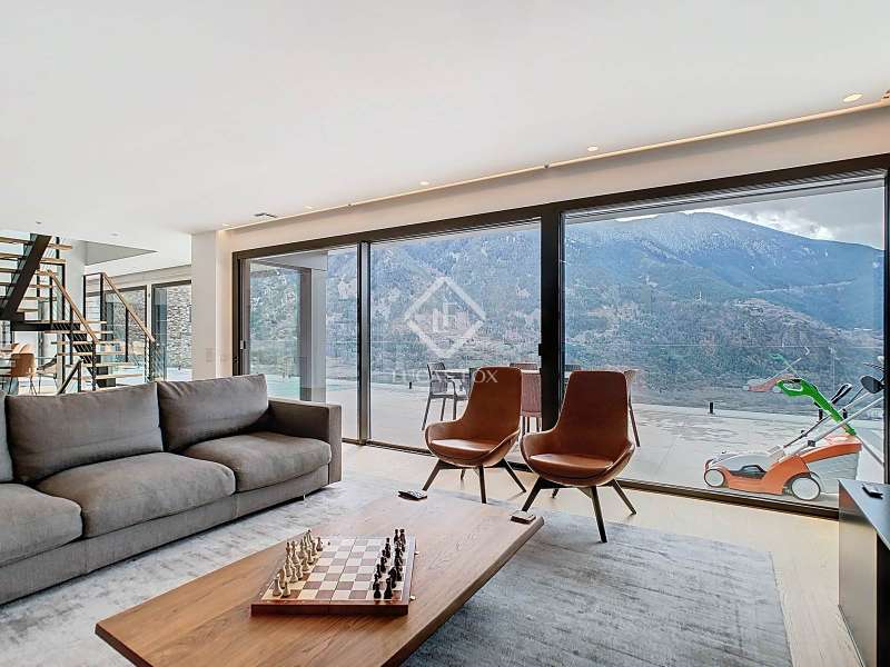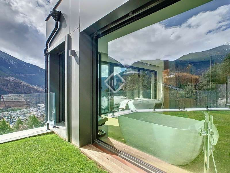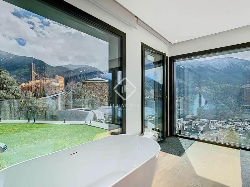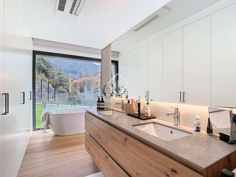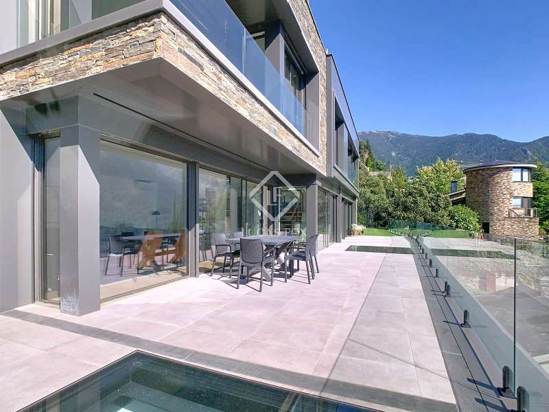 Lucas Fox presents this fantastic 523,88 m² detached house located in the sought-after Can Diumenge area, just minutes from the centre of Escaldes. The property is designed with the highest quality materials, including imported wired glass for the skylight areas, and enjoys plenty of natural light thanks to its interior design. The house is spread over 4 floors, all connected by stairs and lift. We enter the villa on the second floor, where we find a small, welcoming entrance hall that connects to the garage, which offers space for two cars. The first floor houses the night area, consisting of three double bedrooms, one of which is a suite with a dressing room, a complete bathroom, and private access to a small garden. The floor is completed by two additional bathrooms serving the other bedrooms and a terrace with exclusive access. On the ground floor, we find the spacious day area, consisting of a bright living-dining room, a wonderful open-plan kitchen fully equipped with top-of-the-line appliances, and a central breakfast island. There is also a convenient pantry with plenty of storage space and a storage room on the same floor for your convenience. A beautiful terrace allows you to enjoy the stunning views of the valley. Finally, the floor offers a 205 m² open-plan area that can be used as a gym, play area, or home theatre. This floor also includes a full bathroom, a large laundry area and the property's technical rooms. Among the features of this attractive property are the floating wooden staircase, imported wired glass, mechanical ventilation, and a dual-pump sewage system. Furthermore, all bedrooms feature built-in wardrobes and ample storage space. Please contact us for more information.