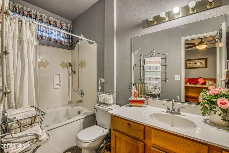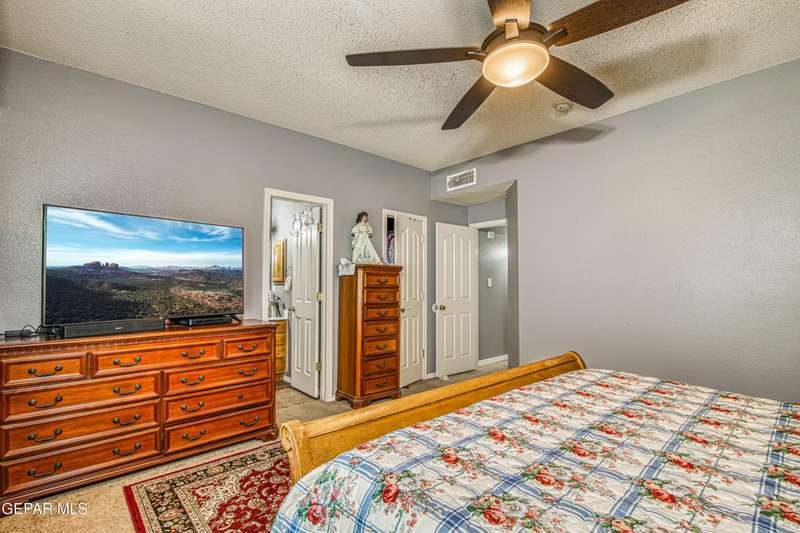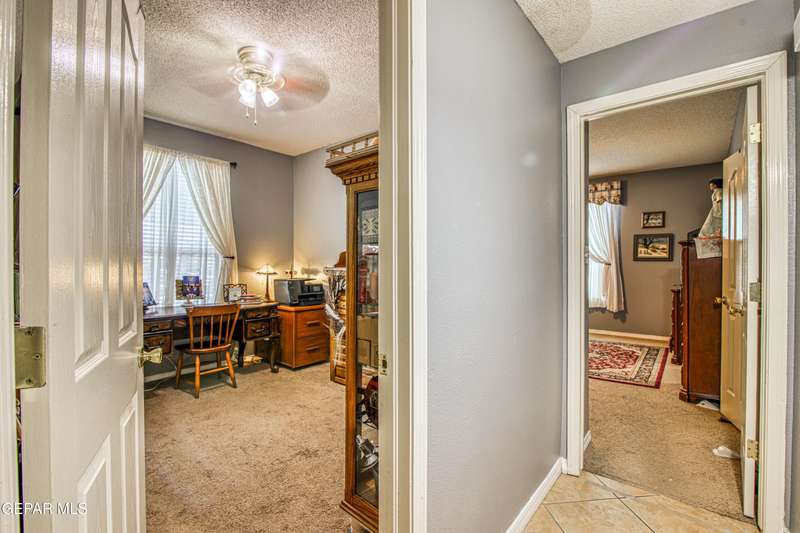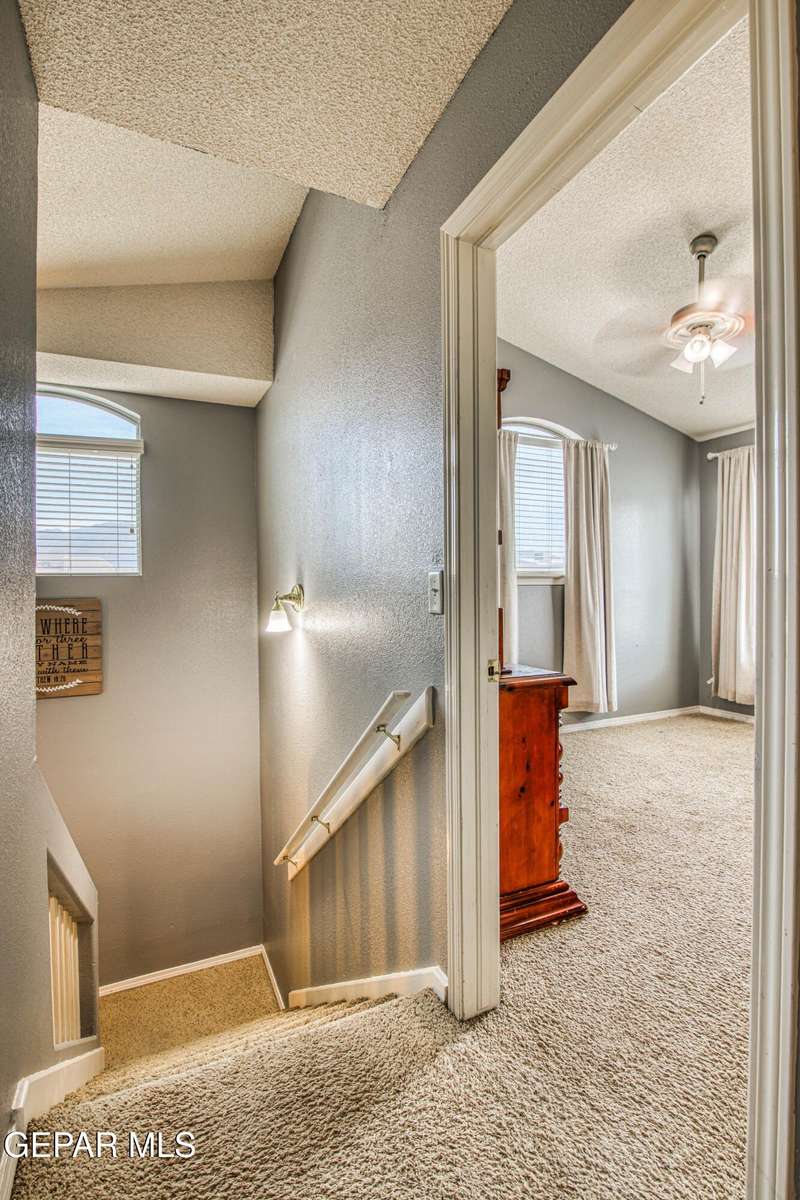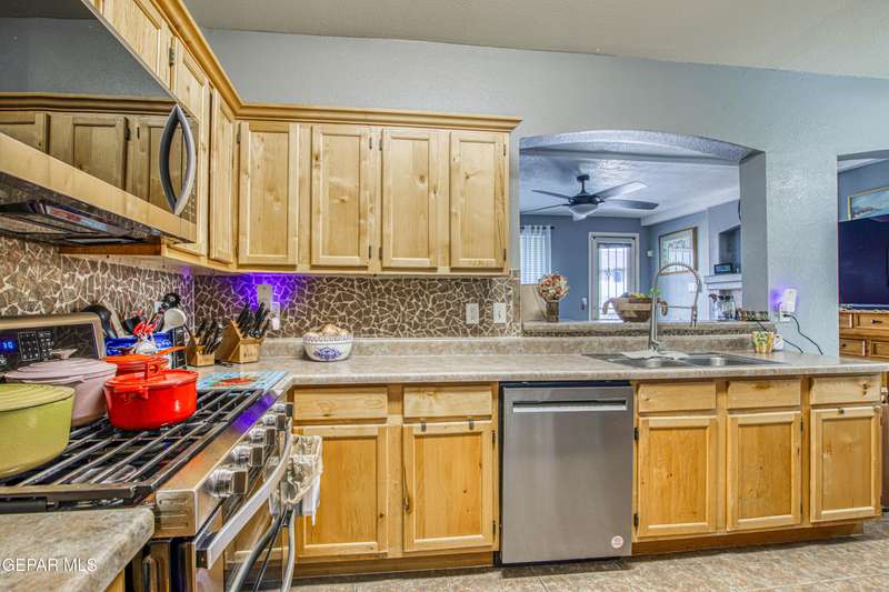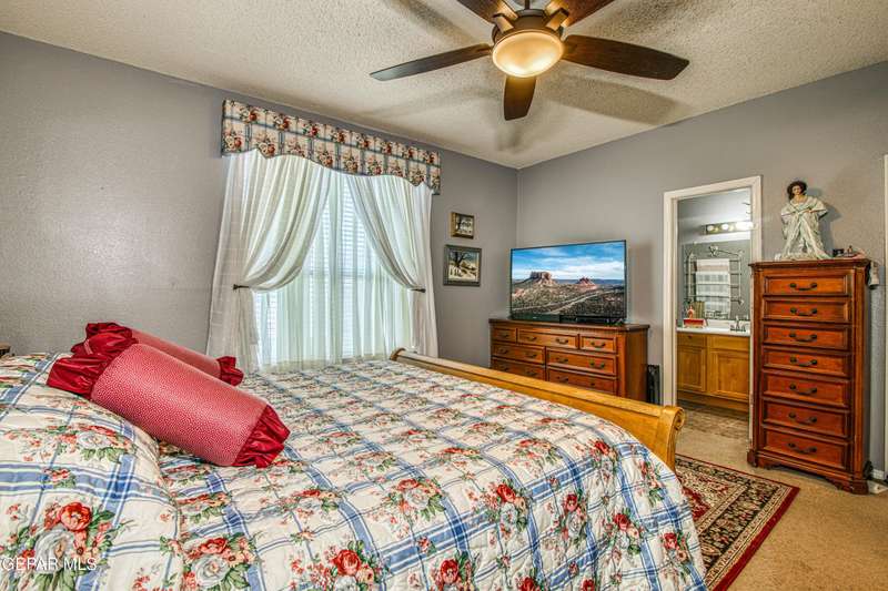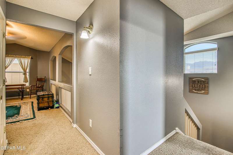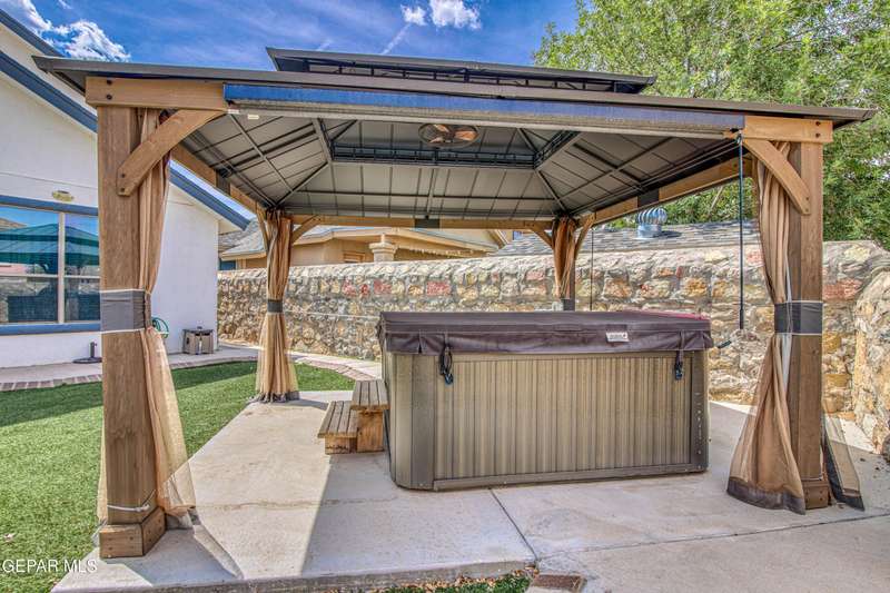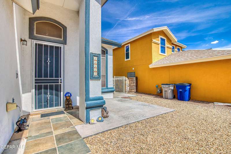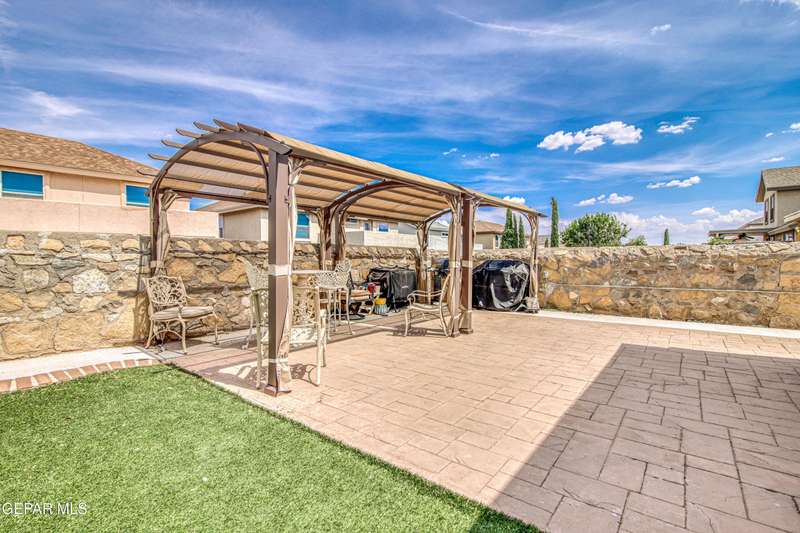 WELCOME HOME! This stunning, move-in ready residence perfectly combines comfort, style, and efficiency. Step inside to a bright, open floor plan with soaring ceilings and seamless flow between the kitchen, dining, and living areas. The beautifully upgraded kitchen features stainless steel appliances, including a double oven and a 2023 LG French door refrigerator, all less than two years old. Upstairs, a spacious loft offers endless possibilities for a home office, playroom, or media space. Enjoy huge energy savings with owned solar panels installed in 2023, seller pays only about $35 per month for electricity. Outside, relax or entertain year-round under the generous covered patio, complete with a hot tub for unwinding after a long day. Ideally located near top-rated schools, shopping, dining, and just minutes from Fort Bliss, this home truly has it all. Don't miss your chance to make this exceptional property yours, schedule your showing today!