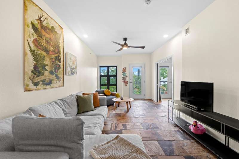 A boutique condominium community located in the sought after Judge's Hill Neighborhood. A wonderful walkable location. This condo is close to the Capitol, Downtown and Lady Bird Lake, UT/DKR stadium, UT Medical School, Pease Park, restaurants and more. This corner end unit offers extra windows and privacy! The primary bathroom has double vanities, soaking tub and separate shower. The primary bedroom has a walk in closet, separate door to the patio, and two walls of windows for great natural light. The second bedroom is a flexible space, perfect for a roommate or home office.