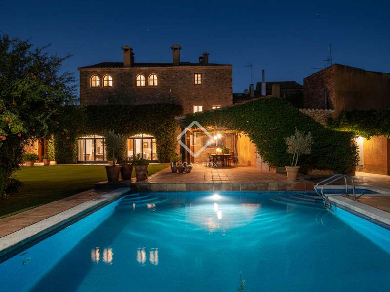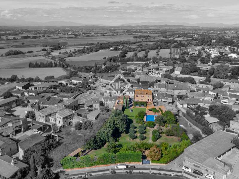 This magnificent 19th century luxury rural house is located in one of the most beautiful and coveted villages in the Baix Empordà, just 32 kilometres from the city of Girona and 15 kilometres from the closest beaches of the Costa Brava. This luxury house for sale in the Baix Empordà is one of the most outstanding homes in Girona. The 5-bedroom villa has been renovated with the highest quality finishes, taking care to respect and preserve many original features, such as the magnificent Catalan vaulted ceilings on the ground floor. The house surprises with the size of its spaces and its large windows, which provide abundant natural light and a feeling of well-being in all its rooms. In addition to the main house, there is a separate 219 m² annex building, spread over two floors, currently used as a garage and play area, but could be converted into a guest or staff house, with at least two bedrooms with bathroom. There is also a large pool with a summer porch, which includes a kitchen, a bathroom, changing rooms and a chill out area. The property sits on a large plot of more than 4,000 m² that offers the possibility of building an additional building and/or a tennis court, and there is access from both ends of the plot. The 615 m² main house is distributed over three floors and includes lift access to all three floors. This building enjoys beautiful views of the hills of the Gavarres natural park and enjoys complete peace, tranquility and privacy. The house is located in the heart of a stunning medieval village and is just a few minutes' walk from local facilities, cafés and restaurants. Please get in touch for more information.