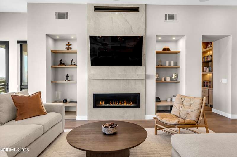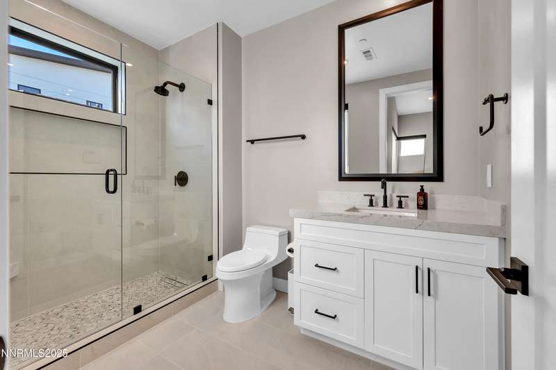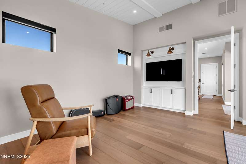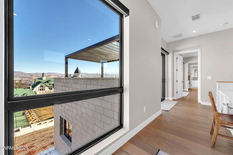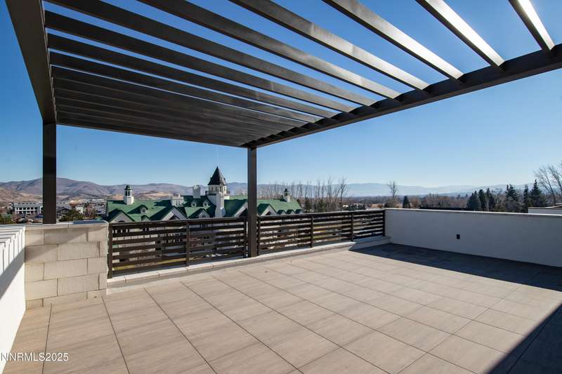 Welcome to The Villas at Rancharrah! Reno's premier gated luxury community offering an unmatched resort lifestyle. Enjoy exclusive access to The Club at Rancharrah, featuring the Nineteen 57 Restaurant & Bar, Pool, Spa and Nail salon, State-of-the-art Fitness Center, Multi-purpose room, Pickleball and Bocce courts, Curated member social events, and off-site access to three nearby Duncan 18-hole championship golf courses. The community offers 24-hour guard-gated security and is centrally located adjacent to Reno's newest hotspot, The Village, filled with Dining, Health, and Shopping options. This exceptional Villa offers a rare penthouse location just steps from the Pickle ball courts, Restaurant, and Clubhouse. The two-level floor plan includes a Private elevator and a stunning Bison deck Rooftop Terrace with panoramic views of the Sierra Nevada and the historic Bill Harrahs estate and mansion. Designed for both elegance and convenience, this virtually new home boasts an open-concept layout with soaring 10' ceilings, Gourmet kitchen with Thermador appliances, Double waterfall edge island, Quartz countertops, and under cabinet lighting. The expansive great room is perfect for entertaining and includes a sleek linear gas fireplace. Additional luxury features include, RH Machinist Glass Cloche Pendants, Built-in cabinetry & lighting in guest suite, 3rd floor tech space, Roof top trellis, Bison deck covered patios, Audio/video media cabinet, ceiling speakers, 4 wall mounted flatscreens, Smart home tech, Custom cabinet hardware, Hunter Douglas custom remote control motorized window coverings, Wood plank ceiling, Decor beamed ceiling, New LG front load washer/dryer with pedestals, and a Wi-Fi-enabled wine fridge. The home offers three bedrooms—each with full en-suite baths and walk-in closets. The dedicated office with built-in cabinetry & lighting is ideal for working from home or creative pursuits. This property was thoughtfully upgraded with high-end finishes throughout, including Kohler Purist matte black fixtures, Extended tile set entry wall, Extended tile bath walls, Epoxy-finished garage flooring, Pure Water System, and Smart home security. With low-maintenance living and world-class amenities just steps away, this home is more than just a residence—it's a lifestyle. Don't miss your chance to own one of the last premier penthouse Villas in this exclusive community. Call today to schedule your private showing!
