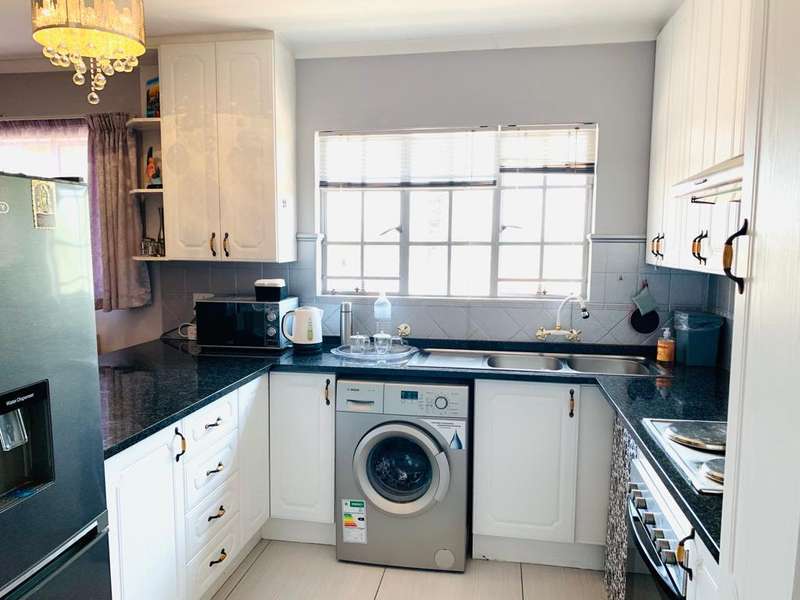 This stunning two bedroom simplex in a boomed off area in Erasmuskloof is available from 01 November 2025.Top floor unit in a sought after complex. Spacious living areas with enclosed balcony and built in braai. Kitchen has space for two appliances. Two bedrooms (both have built in cupboards), two bathrooms (1 full bathroom and one with shower only). Pre-paid meter for electricity (own account with Impact Meters). Water included in the rental. Two automated garages. Unfortunatley no pets allowed. Call me to arrange a private viewing !