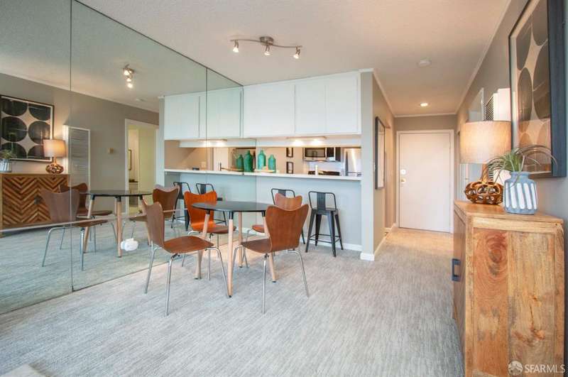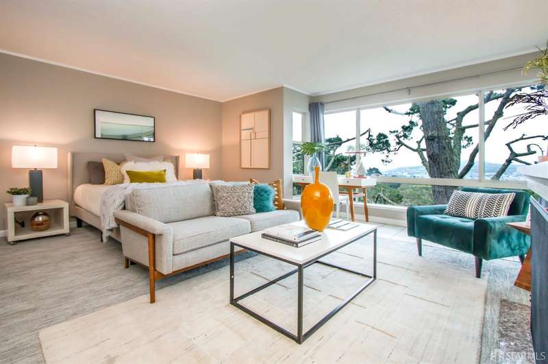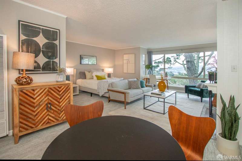 Welcome to this spacious, light-filled junior one-bedroom, offering sweeping south-facing views of the mountains, bay, and lush trees. The remodeled kitchen boasts abundant storage, a convenient breakfast bar, and generous counter space. Throughout the unit, you'll find a large sleeping alcove, an updated bathroom, and a walk-in closet. The versatile layout allows you to create a private retreat or open the space for entertaining family and friends. Just a short walk away, enjoy shopping, dining, and the endless trails of Glen Park, Twin Peaks, and Upper Douglass Dog Park. This centrally located community provides quick access to freeways, public transit, and every corner of the city, along with the convenience of your own assigned, secure garage parking. Resort-style amenities include a fitness center, outdoor pool, sauna, spa, and billiards. Whether you're seeking your first home, a pied-a-terre, or an investment property, this condo presents an excellent opportunity.